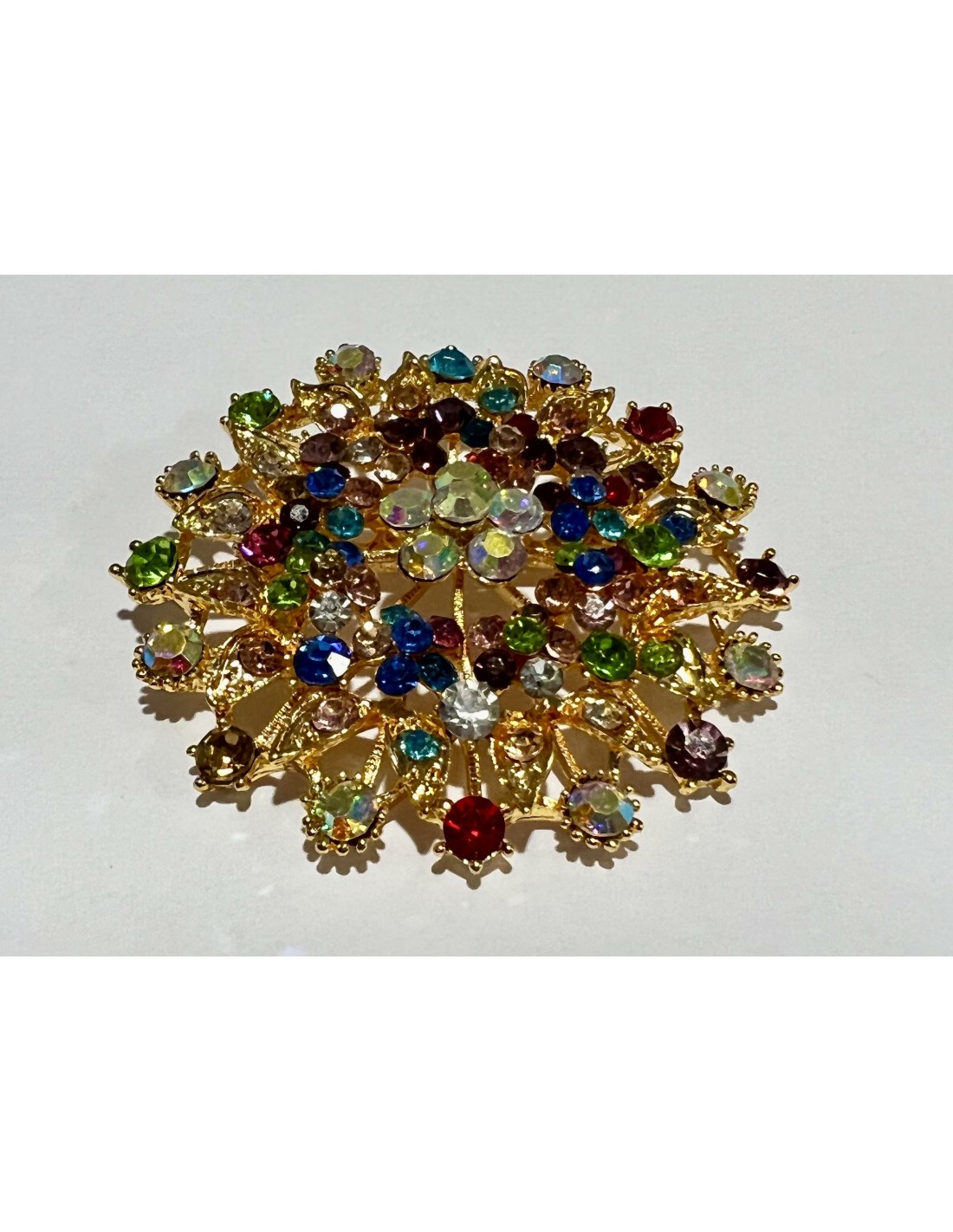 broche ronde dore et multicouleur