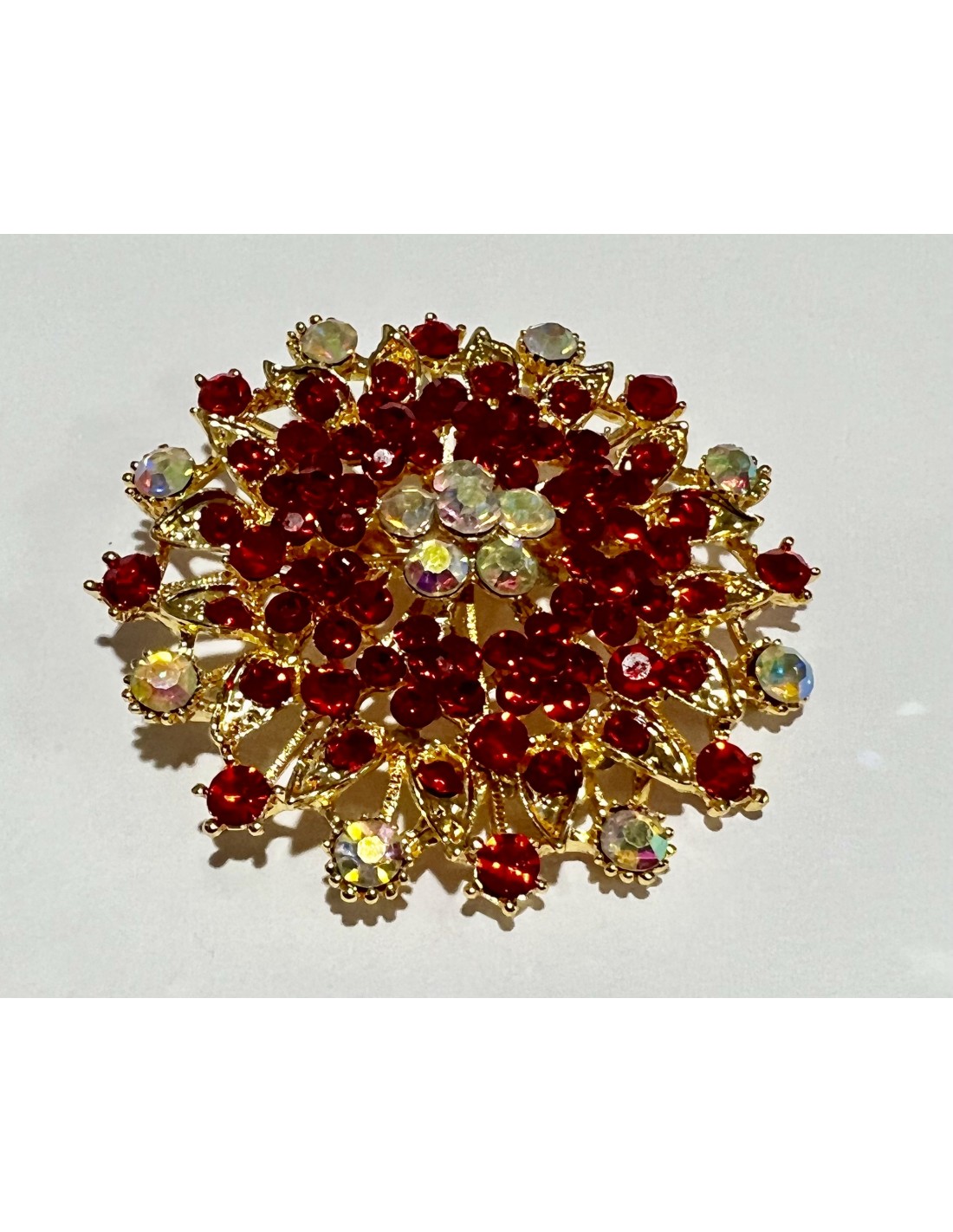 Broche fantaisie forme ronde, sertie de strass doré et pierre blanches