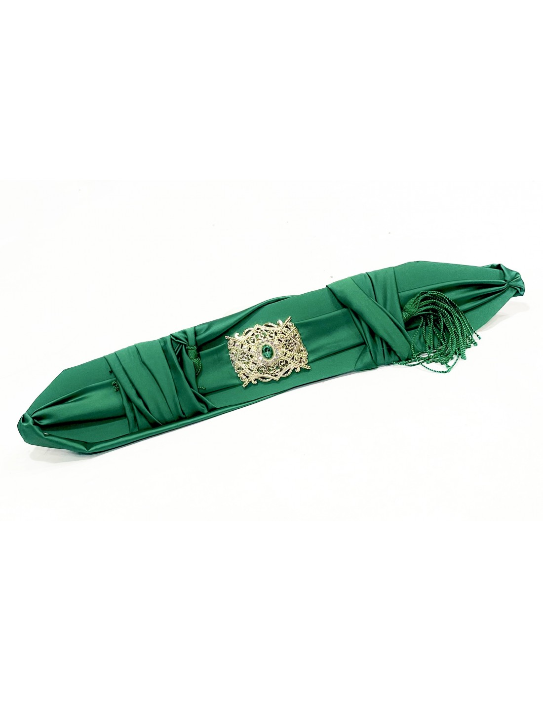 Ajoutez une touche de luxe et de sophistication à votre tenue traditionnelle avec cette somptueuse ceinture orientale en satin vert émeraude. Conçue pour sublimer un caftan, une takchita ou une robe de cérémonie orientale, cette ceinture allie tradition et modernité avec son tissu satiné fluide et raffiné.