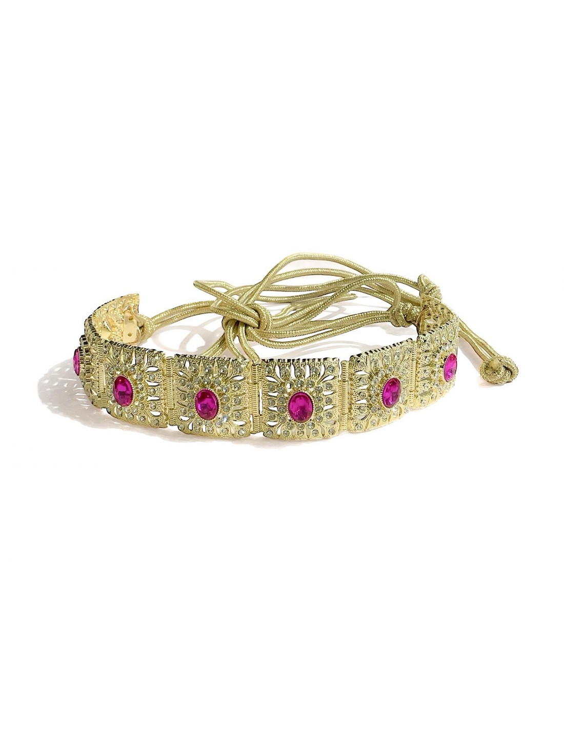 Cette ceinture dorée ornée de pierres rose vif est l’accessoire parfait pour toutes celles qui recherchent une pièce élégante et prestigieuse, capable de transformer une tenue en véritable chef-d’œuvre de sophistication. Ajoutez cette pièce unique à votre collection et laissez-vous séduire par son charme intemporel !