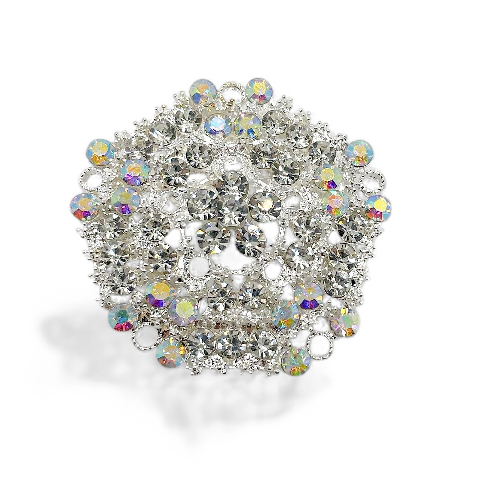 Broche fantaisie forme ronde, sertie de strass doré et pierre rouge