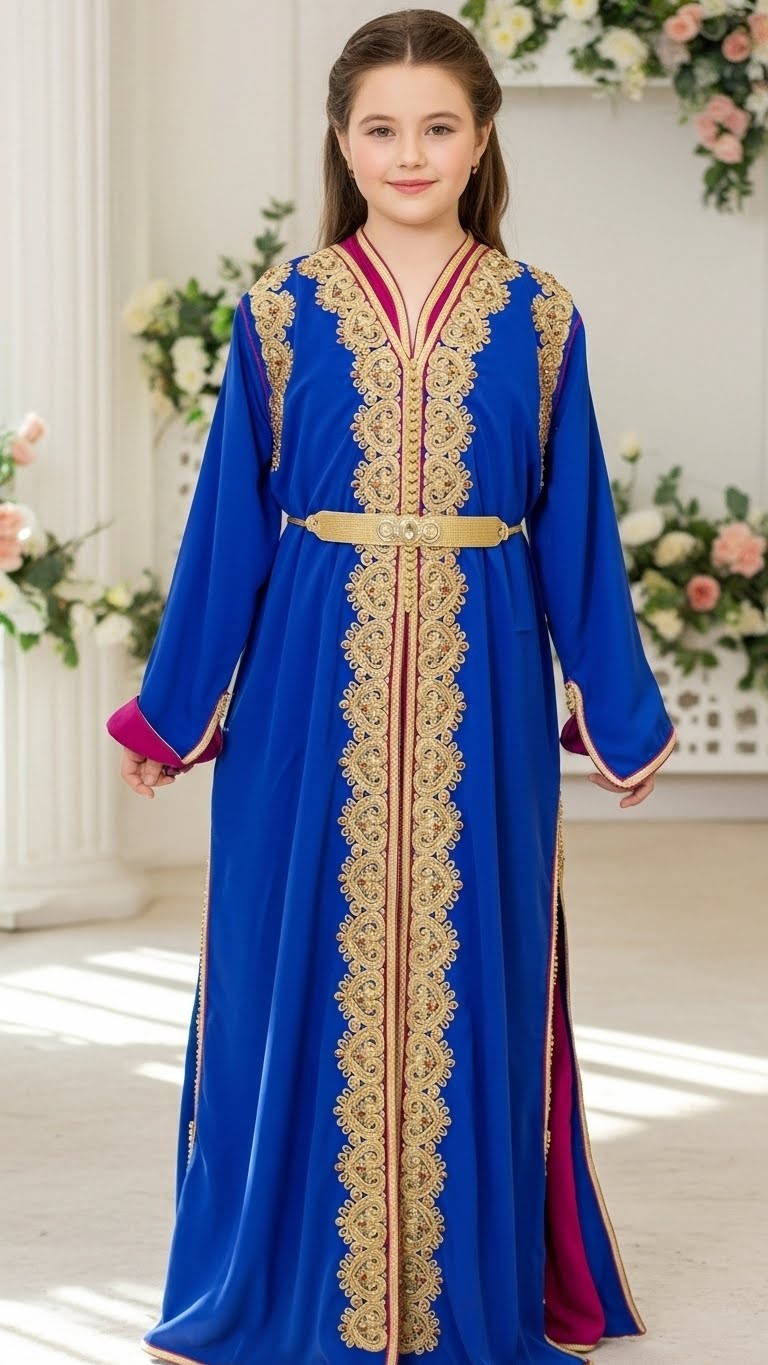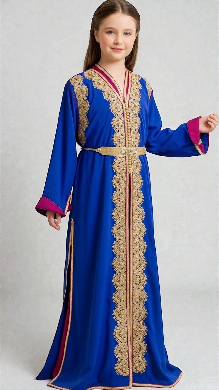 Cette takchita enfant 2 pièces est spécialement conçue pour sublimer les jeunes filles et adolescentes de 8 à 15 ans lors des grandes occasions. Inspirée des caftans marocains traditionnels, elle associe raffinement orientalconfort et modernité, pour un rendu à la fois chic et adapté à l’âge.