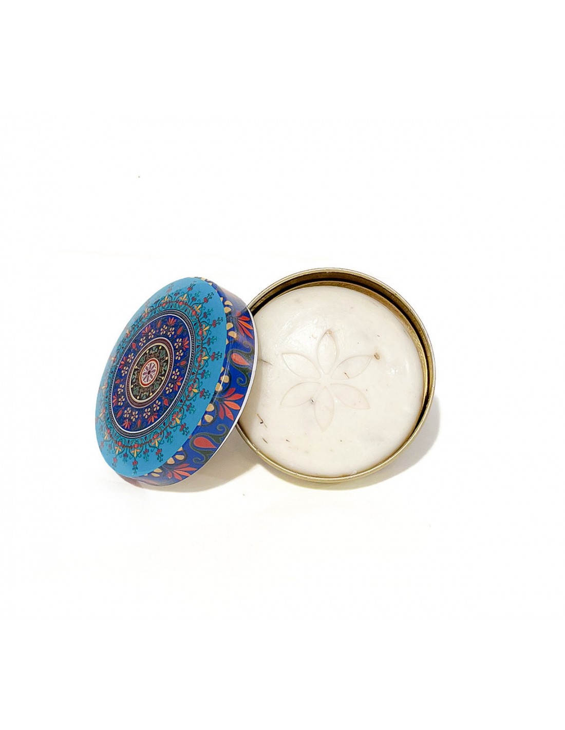 boite en métal motifs indien bleu turquoise avec savon parfumé  - 2