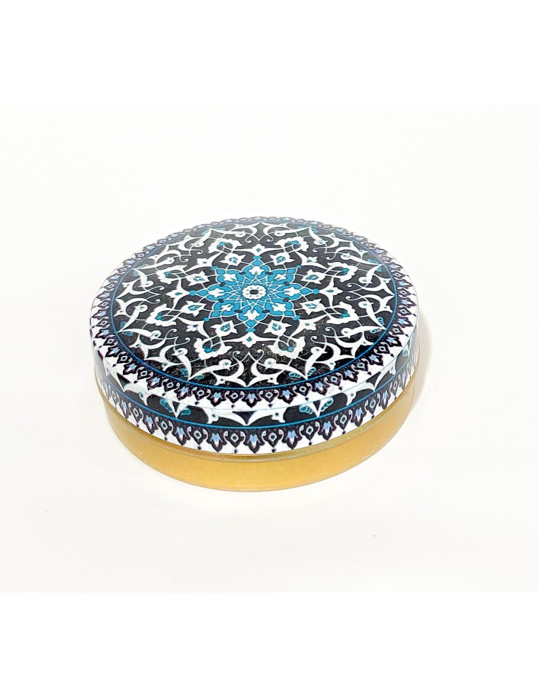 boite en métal motifs indien bleu avec savon parfumé blanc  - 2