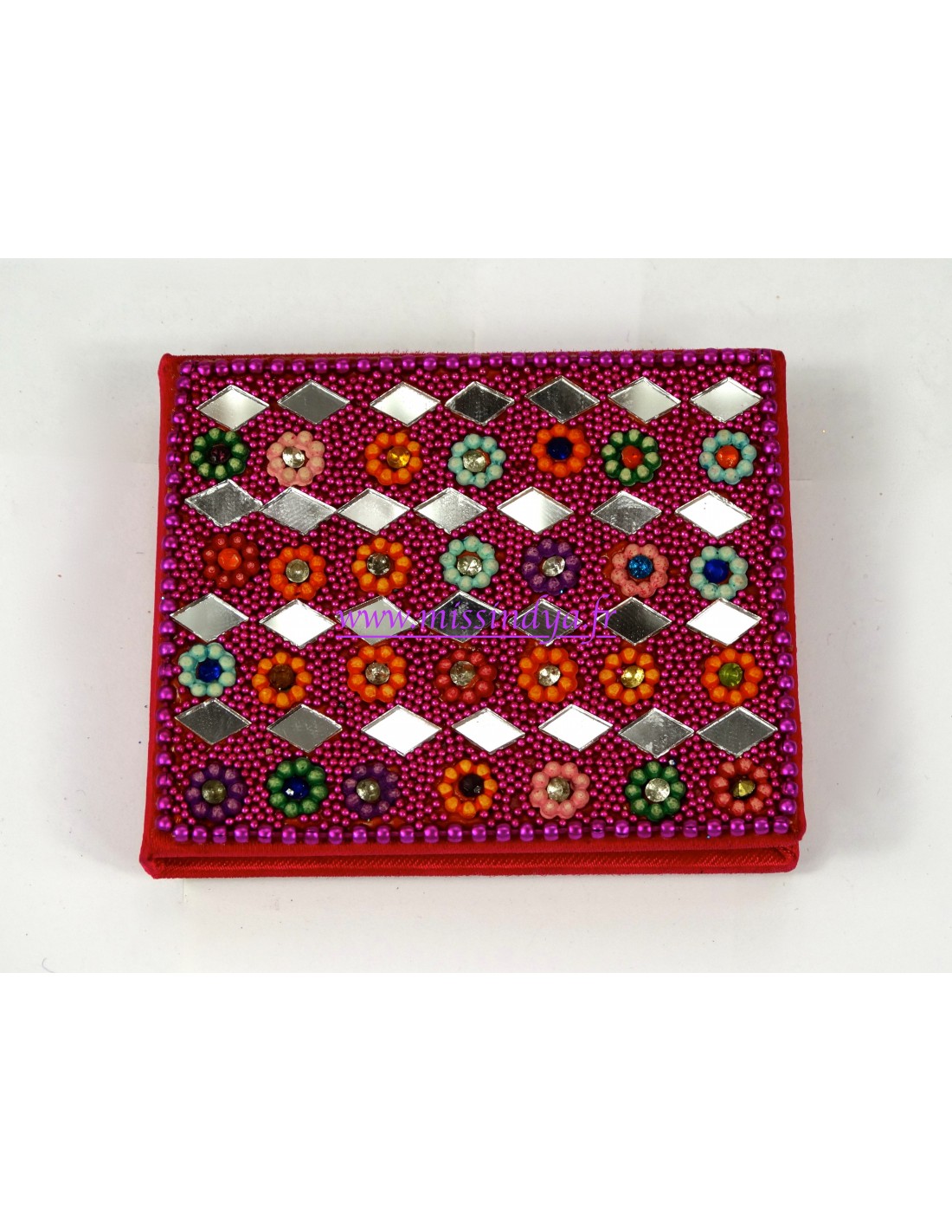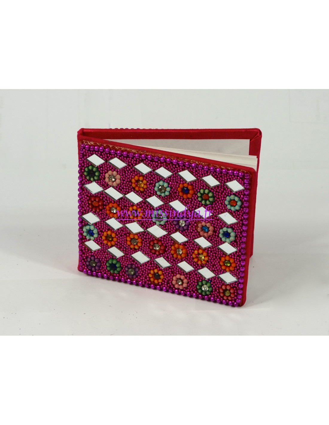 Carnet avec la couverture décoré avec des motif en miroir et des paillette.