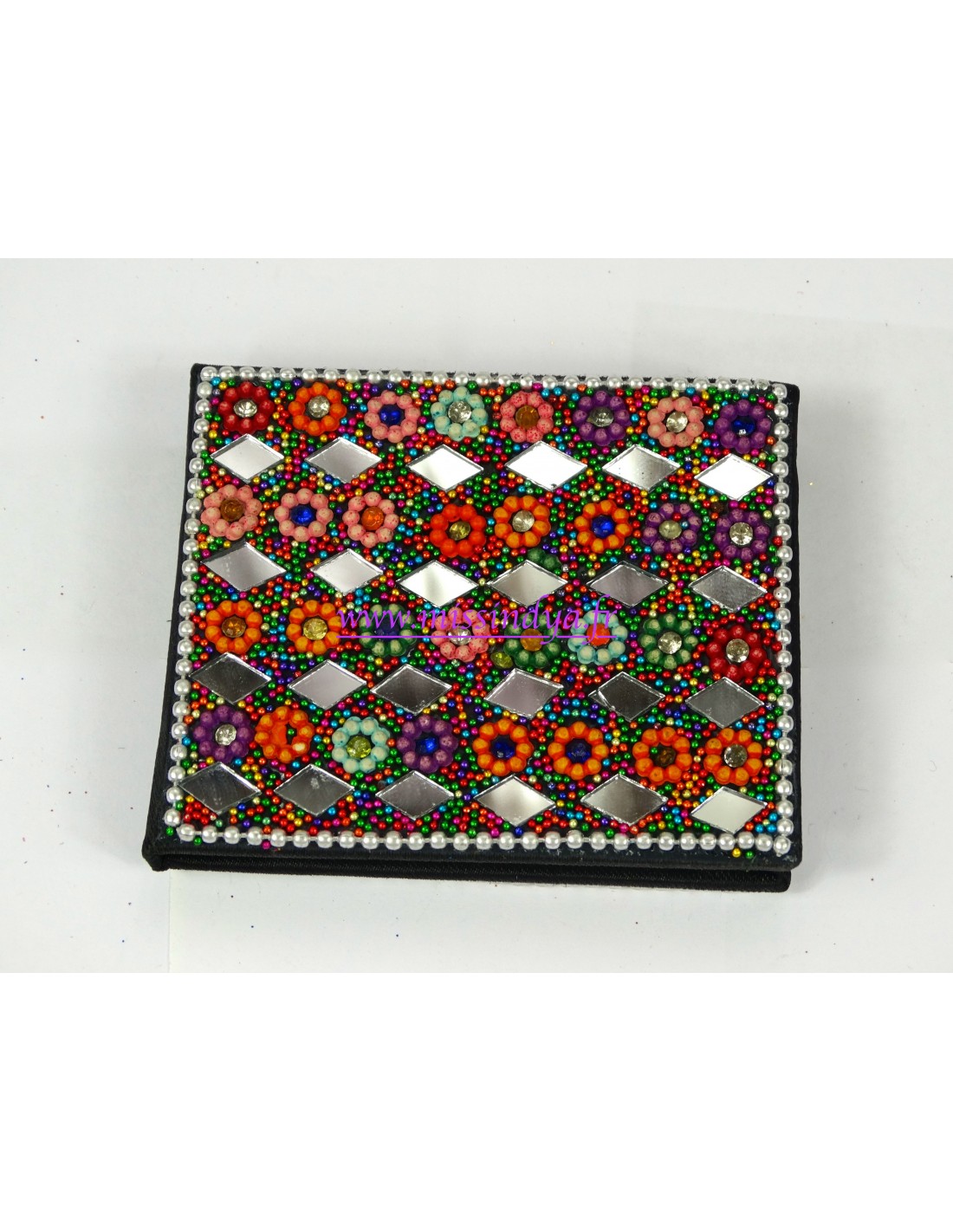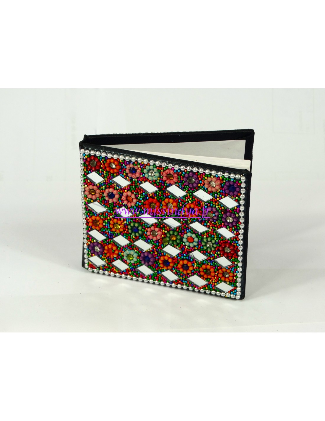 Carnet avec la couverture décoré avec des motif en miroir et des paillette.