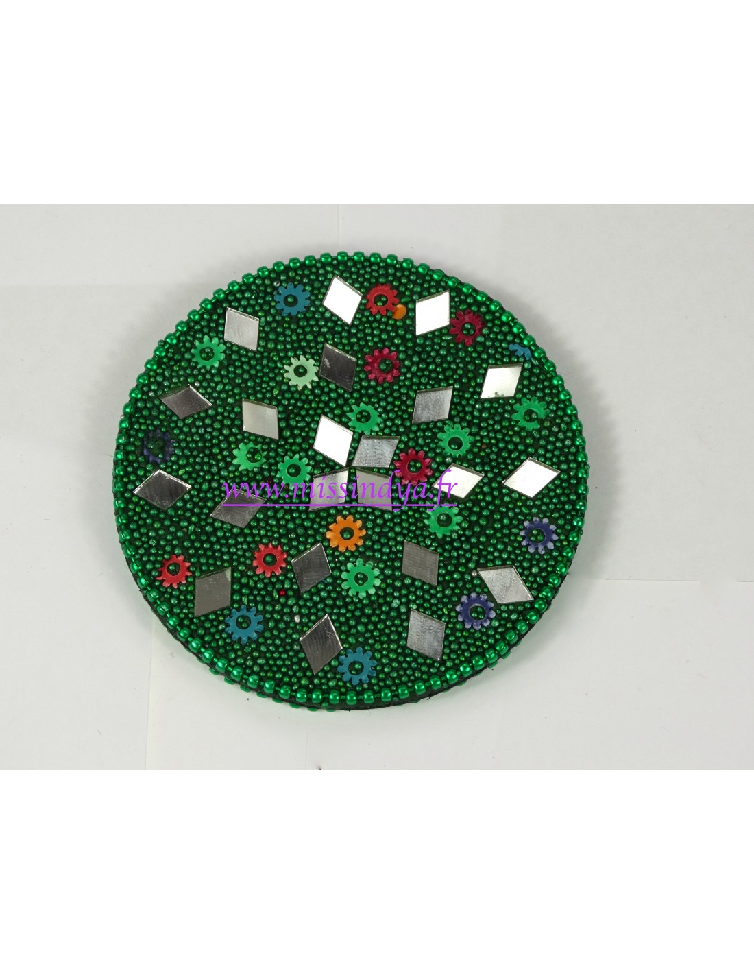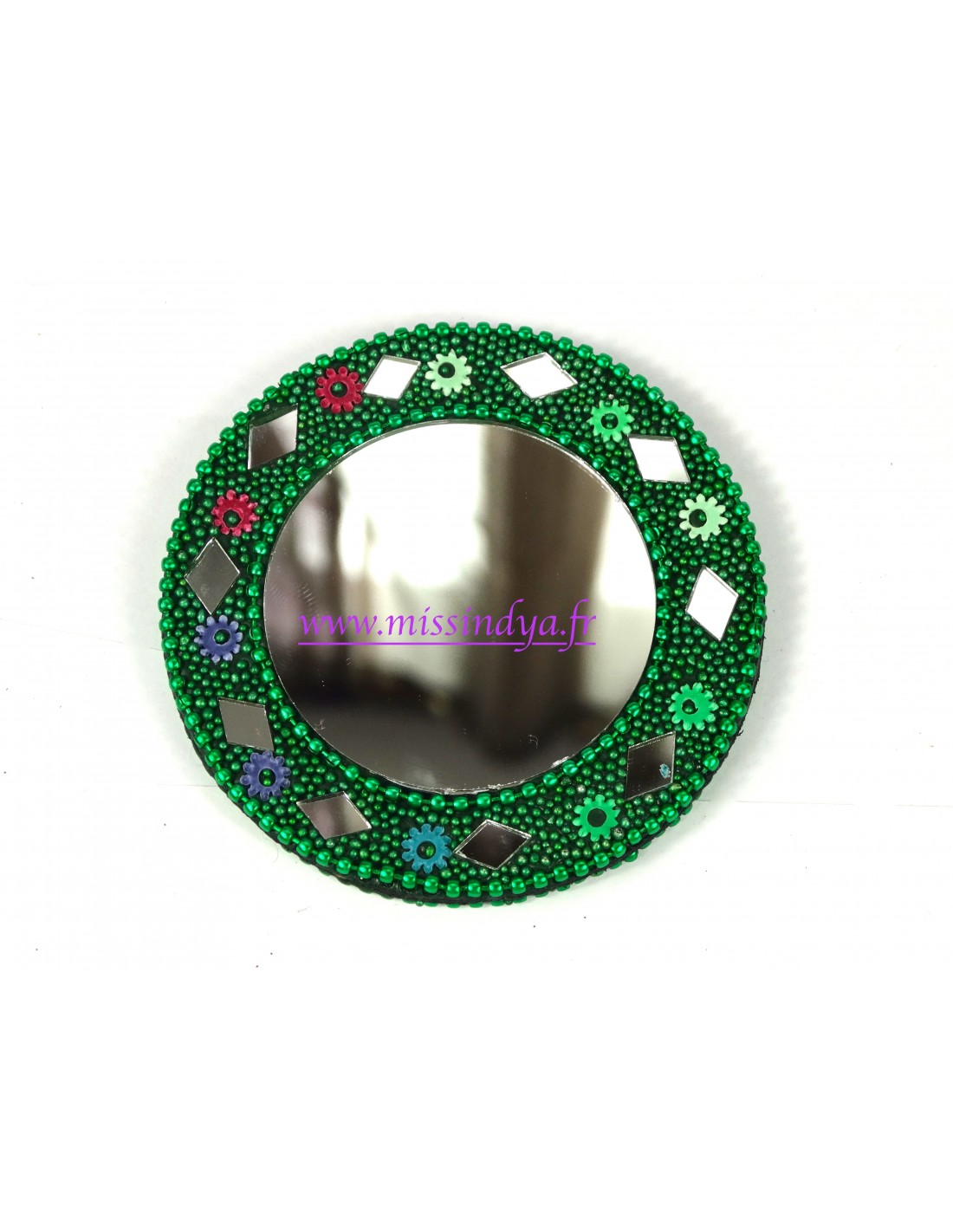 Miroir avec des paillette strass vert
