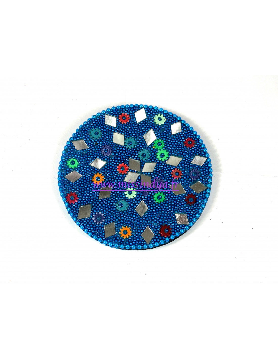 Miroir avec des paillette strass bleu