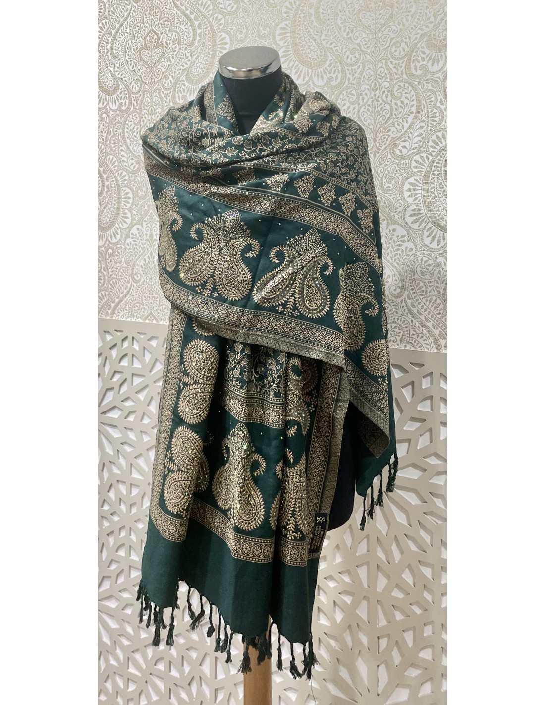 Pashmina Kashmir perle Echarpe haute gamme foulard Vert