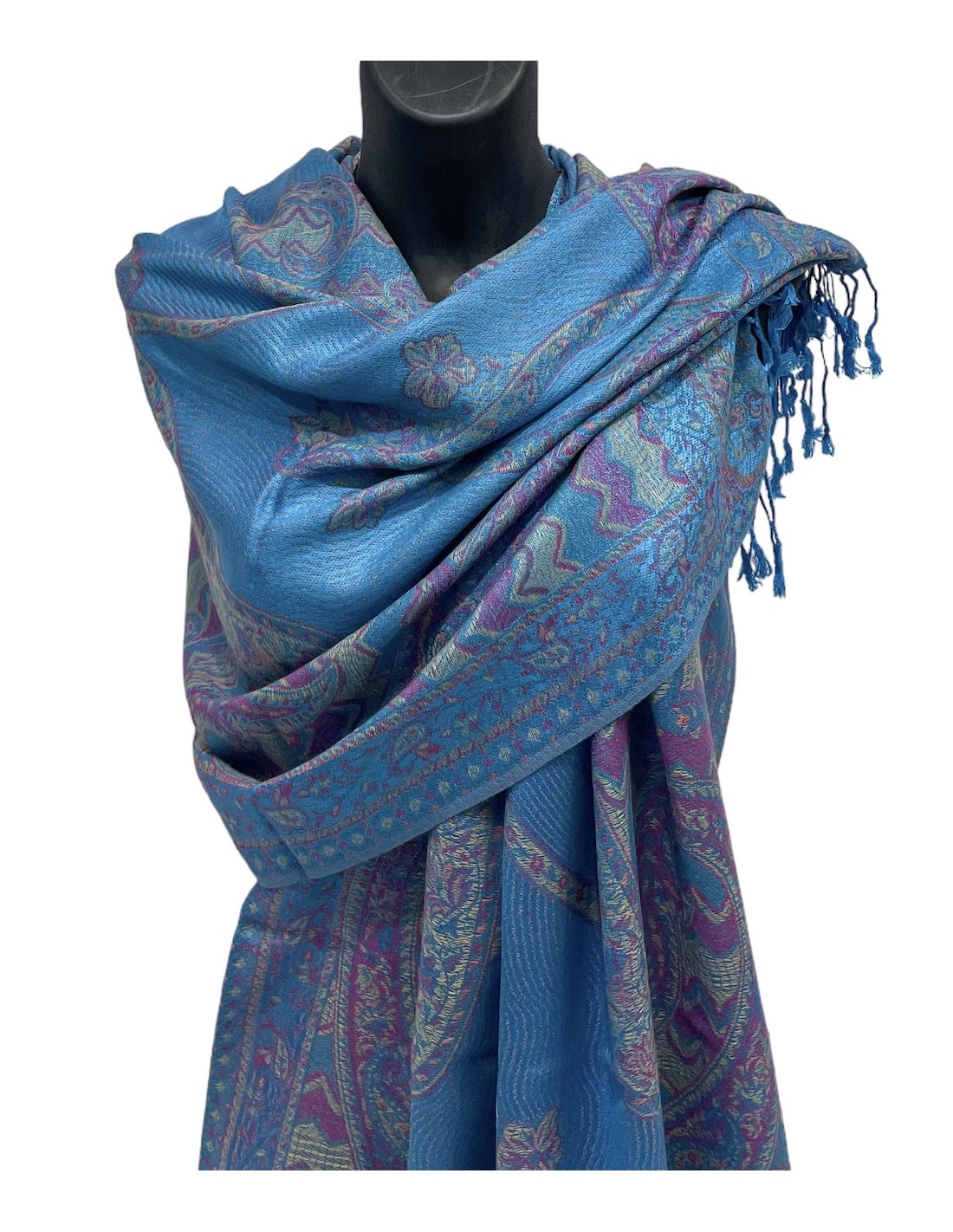 Echarpe bleu turquoise MOTIFS PASHMINA