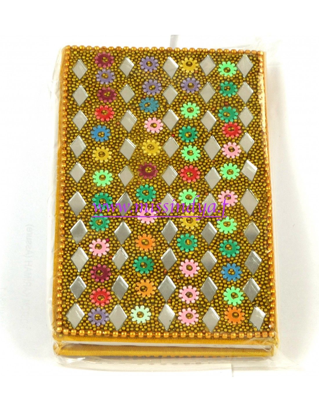 Carnet avec la couverture décoré avec des motif en miroir et des paillette.