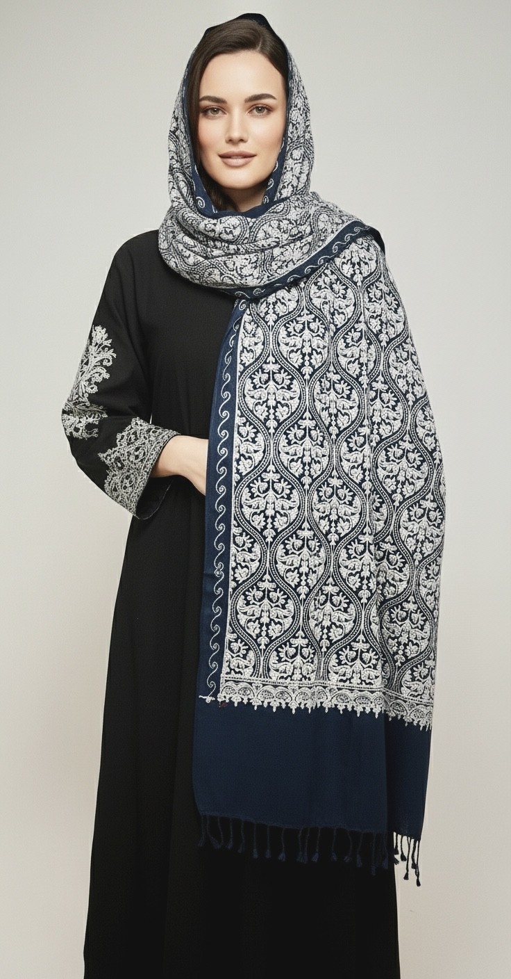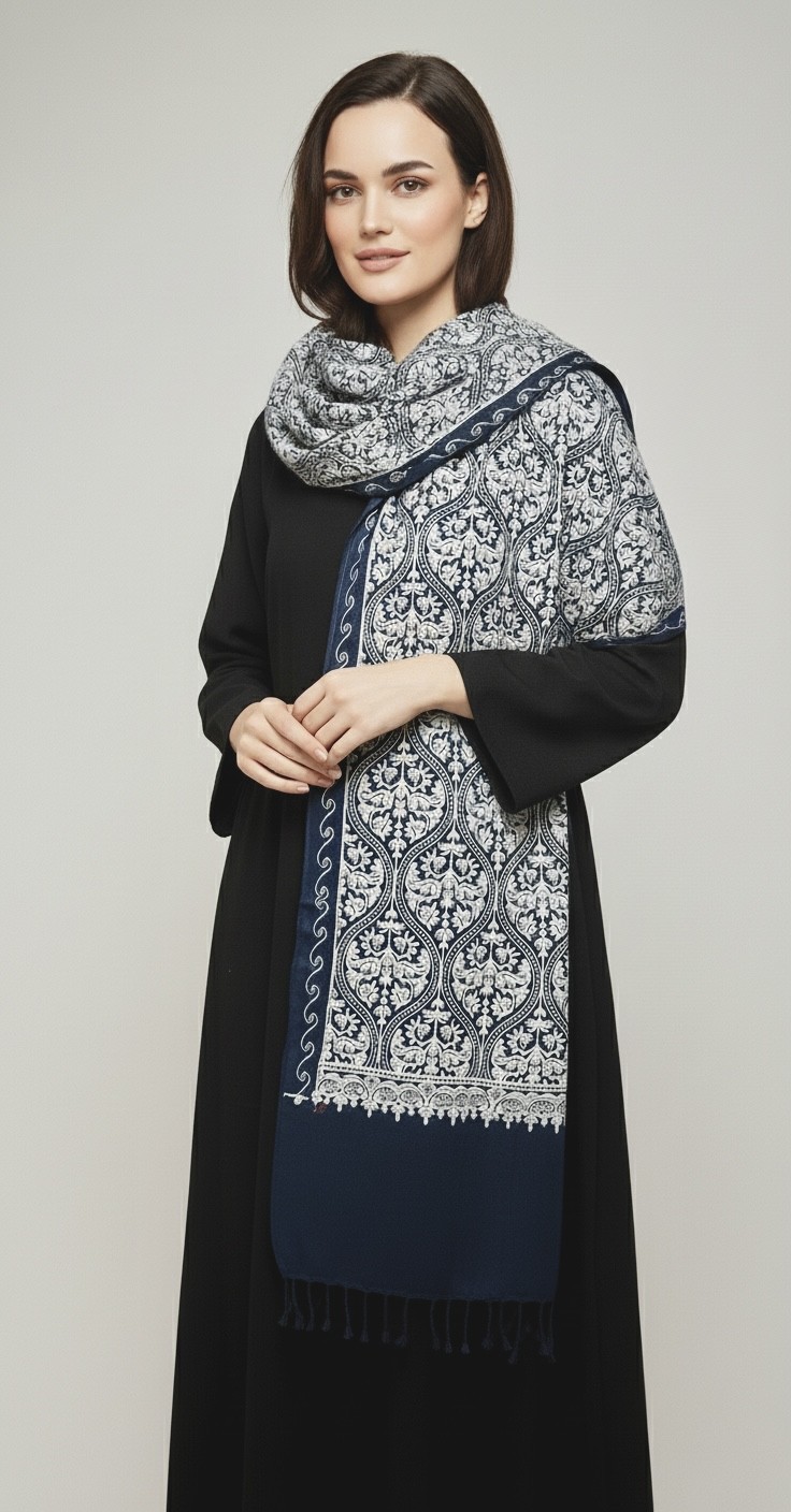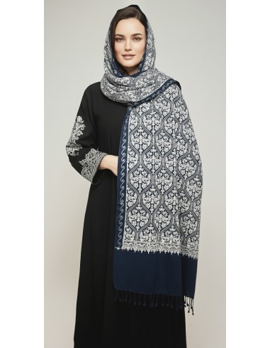 Pashmina Indien Brodé Echarpe Haute Gamme Bleu