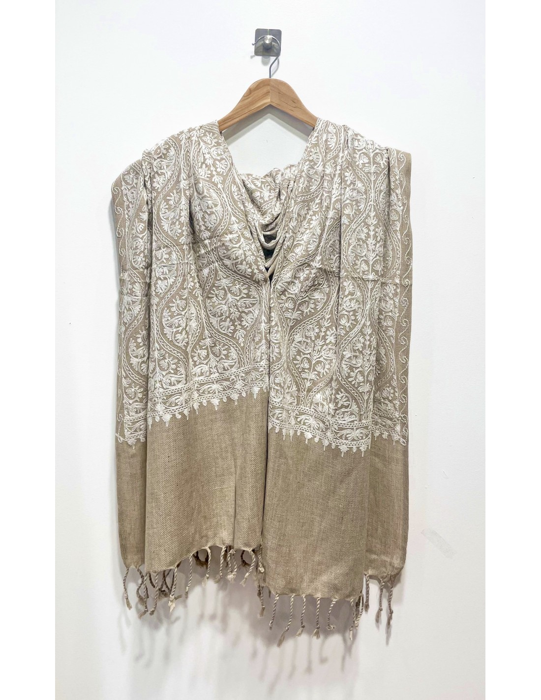 Pashmina Indien Brodé Echarpe Haute Gamme Beige
