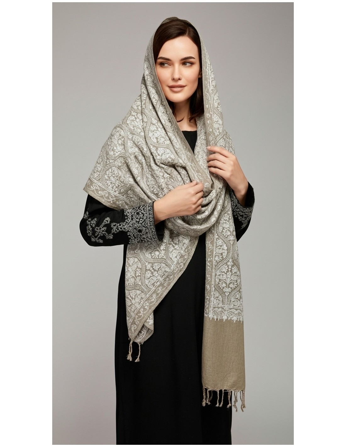 Pashmina Indien Brodé Echarpe Haute Gamme Beige  - 1