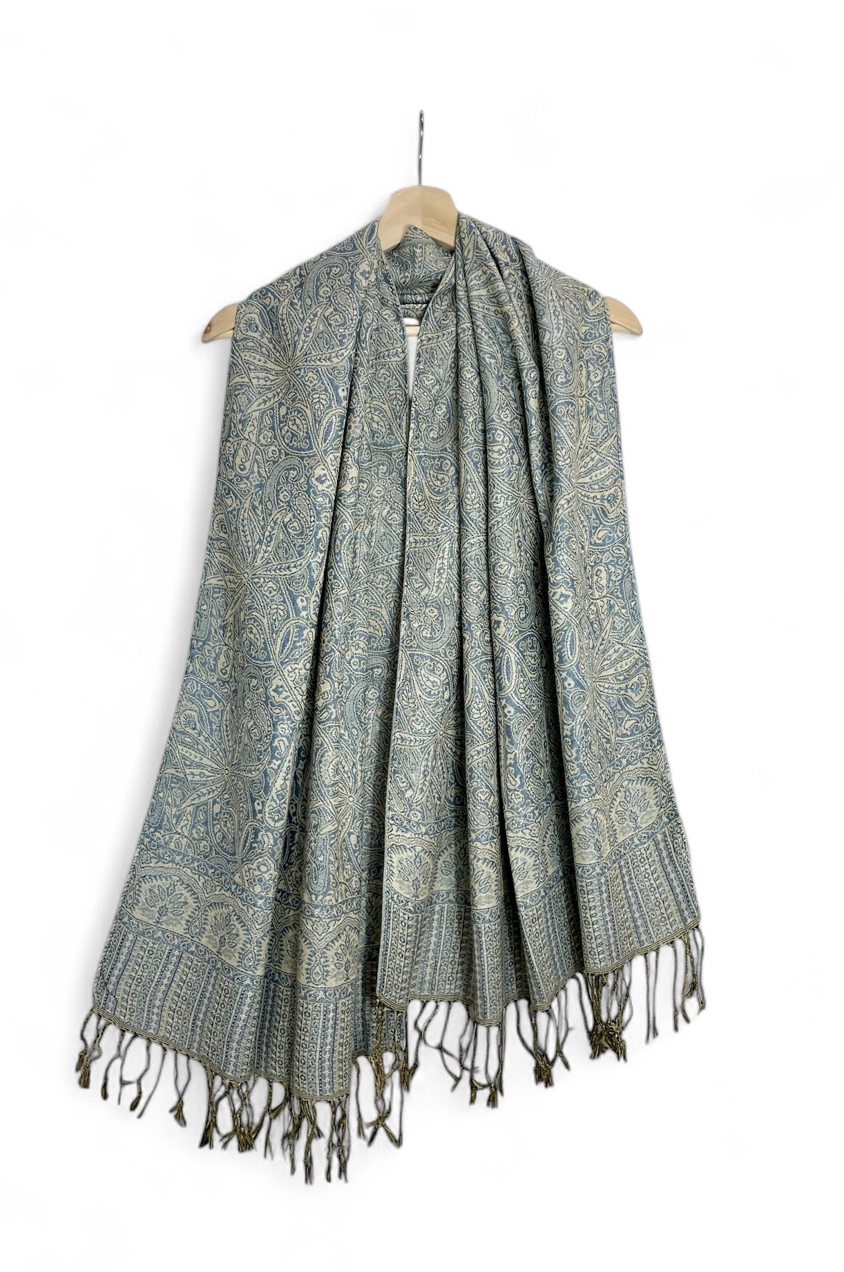 Sublimez votre style avec ce superbe pashmina indien artisanal, confectionné selon les traditions du Cachemire. Chaque pièce est finement tissée et ornée de motifs floraux et cachemire (paisley) pour un rendu chic et intemporel.