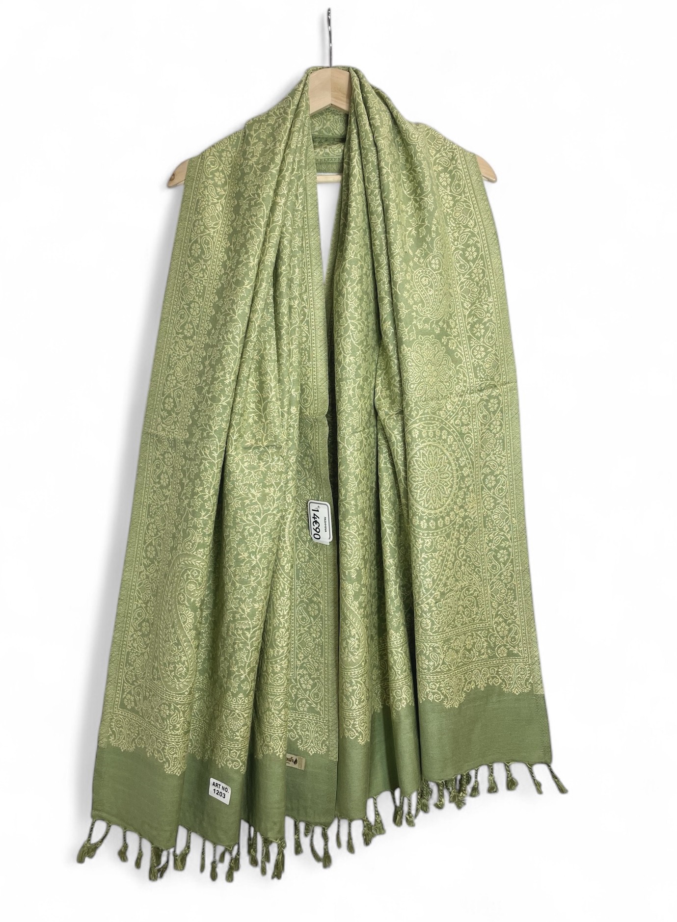 Sublimez votre style avec ce superbe pashmina indien artisanal, confectionné selon les traditions du Cachemire. Chaque pièce est finement tissée et ornée de motifs floraux et cachemire (paisley) pour un rendu chic et intemporel.