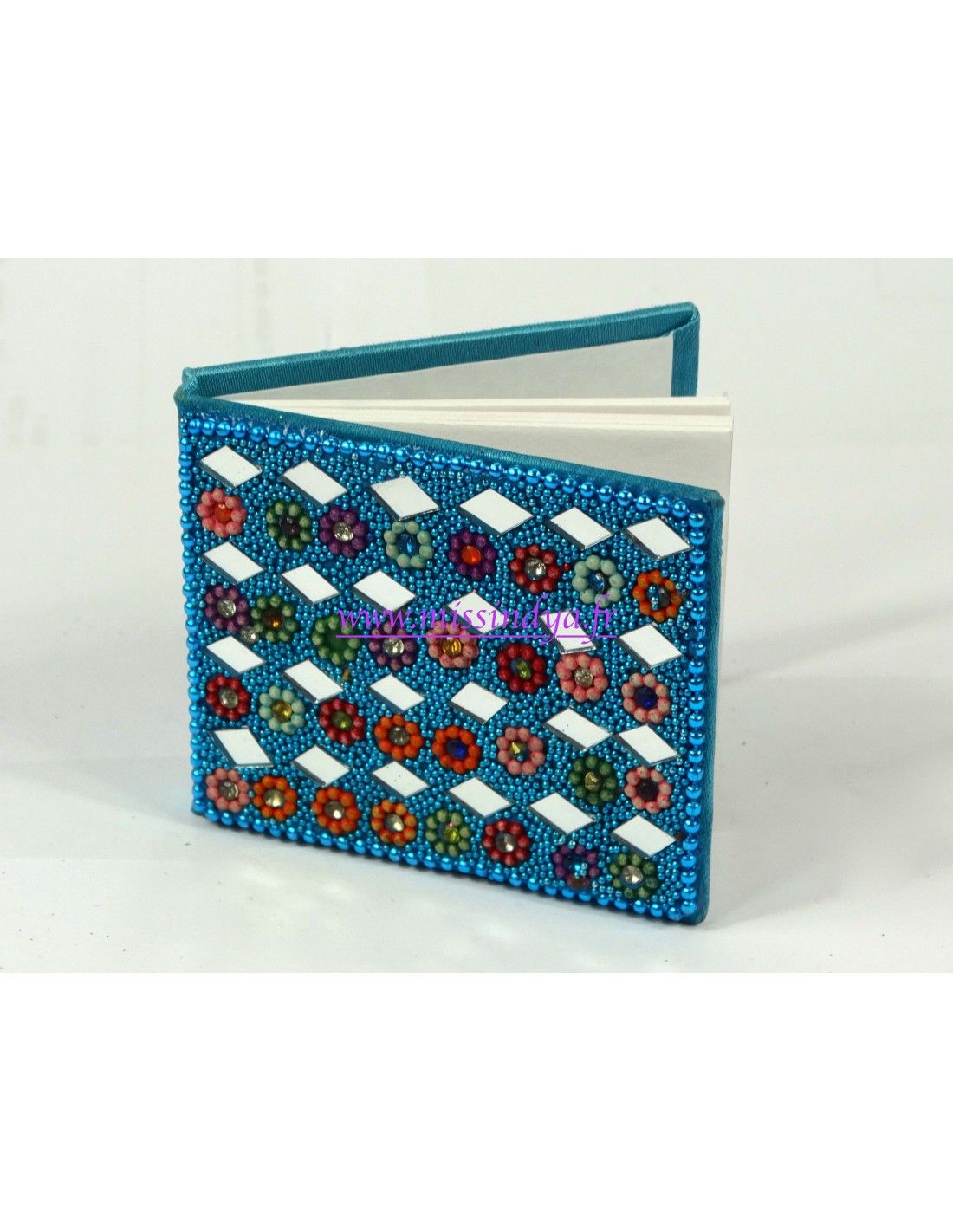 Carnet avec la couverture décoré avec des motif en miroir et des paillette.