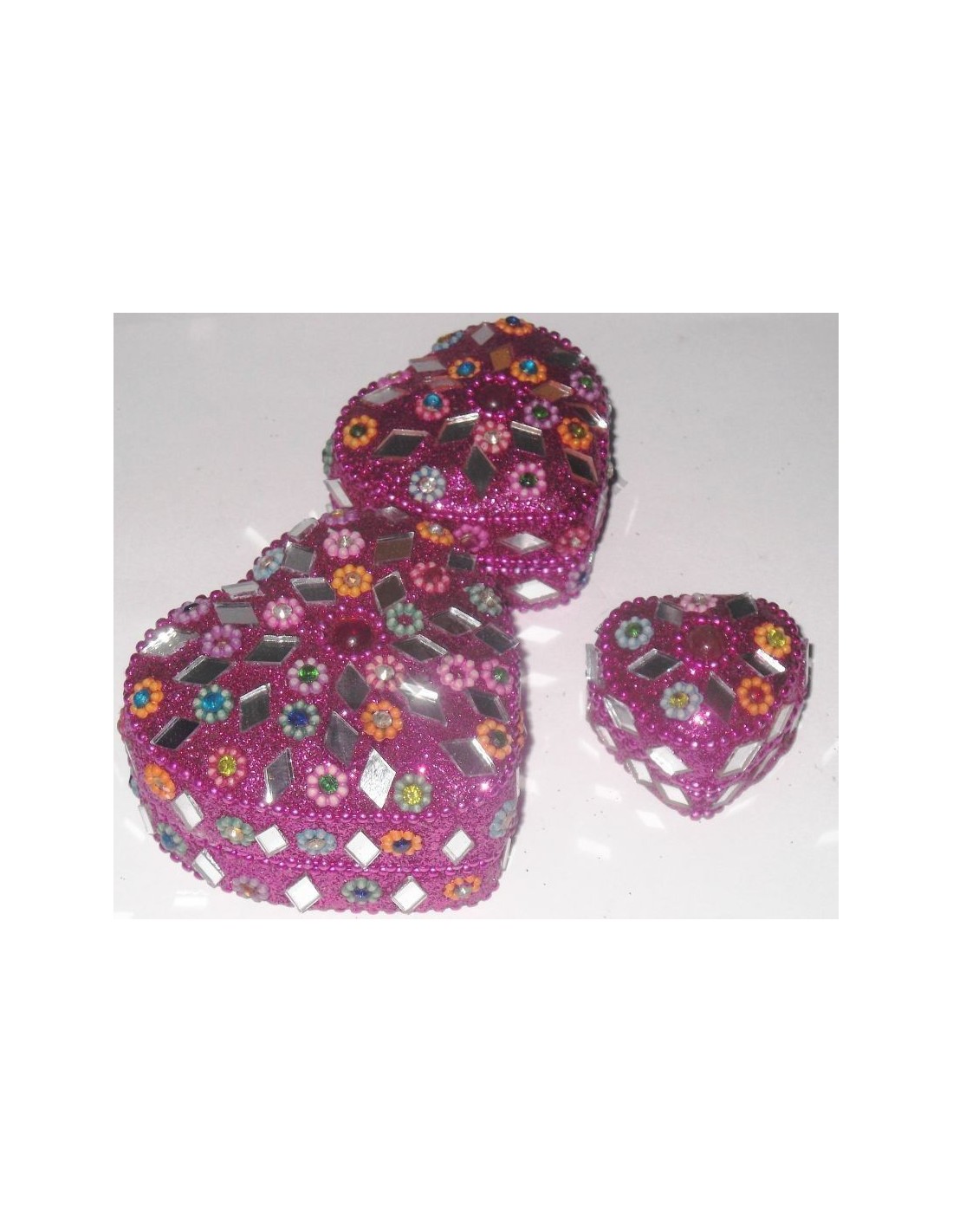 Set Pot à bijoux 3 Pièces Pailleté Coeur Rose Bazar indien