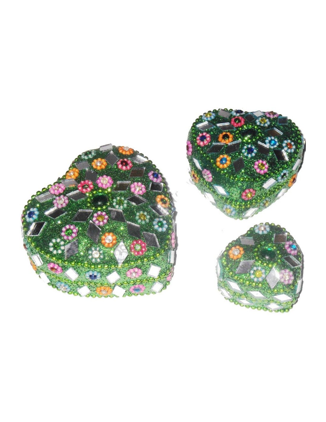 Set Pot à bijoux 3 Pièces Pailleté Coeur Vert Bazar indien