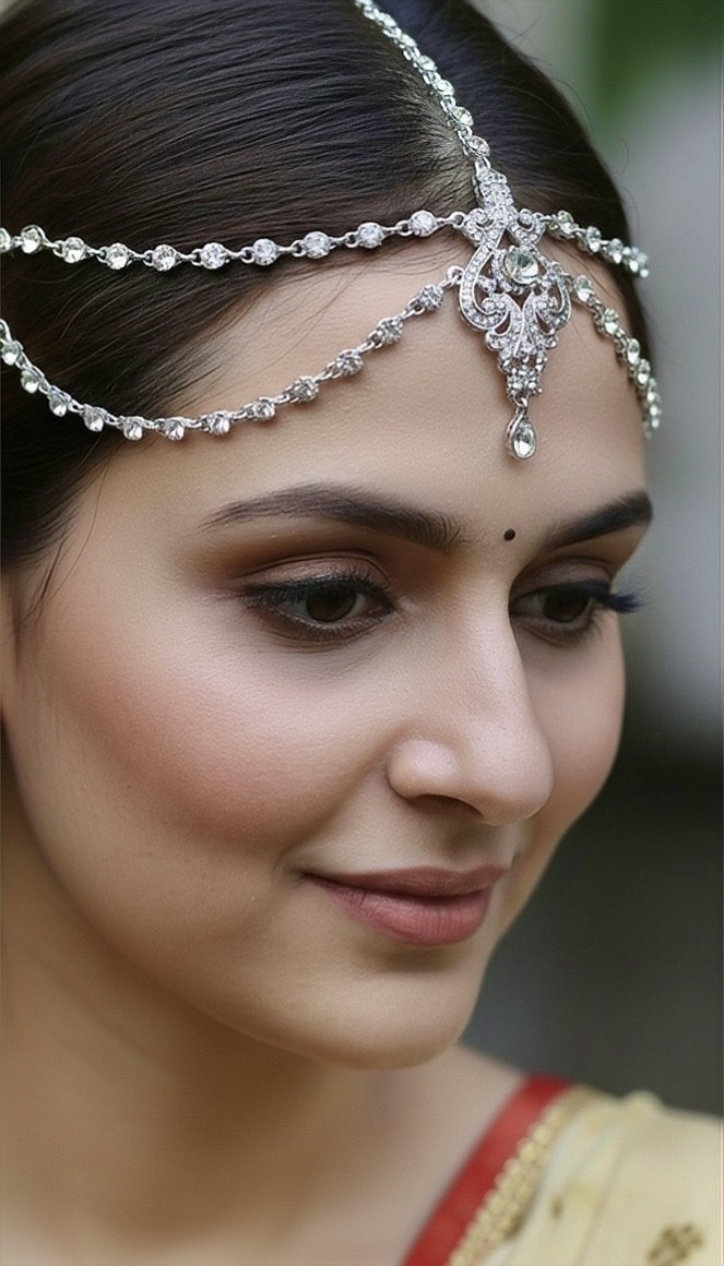 Bijoux Front indienne idéale pour complémenter votre Salwar Kameez ou donné une petite touche indienne supplémentaire à votre tenue.