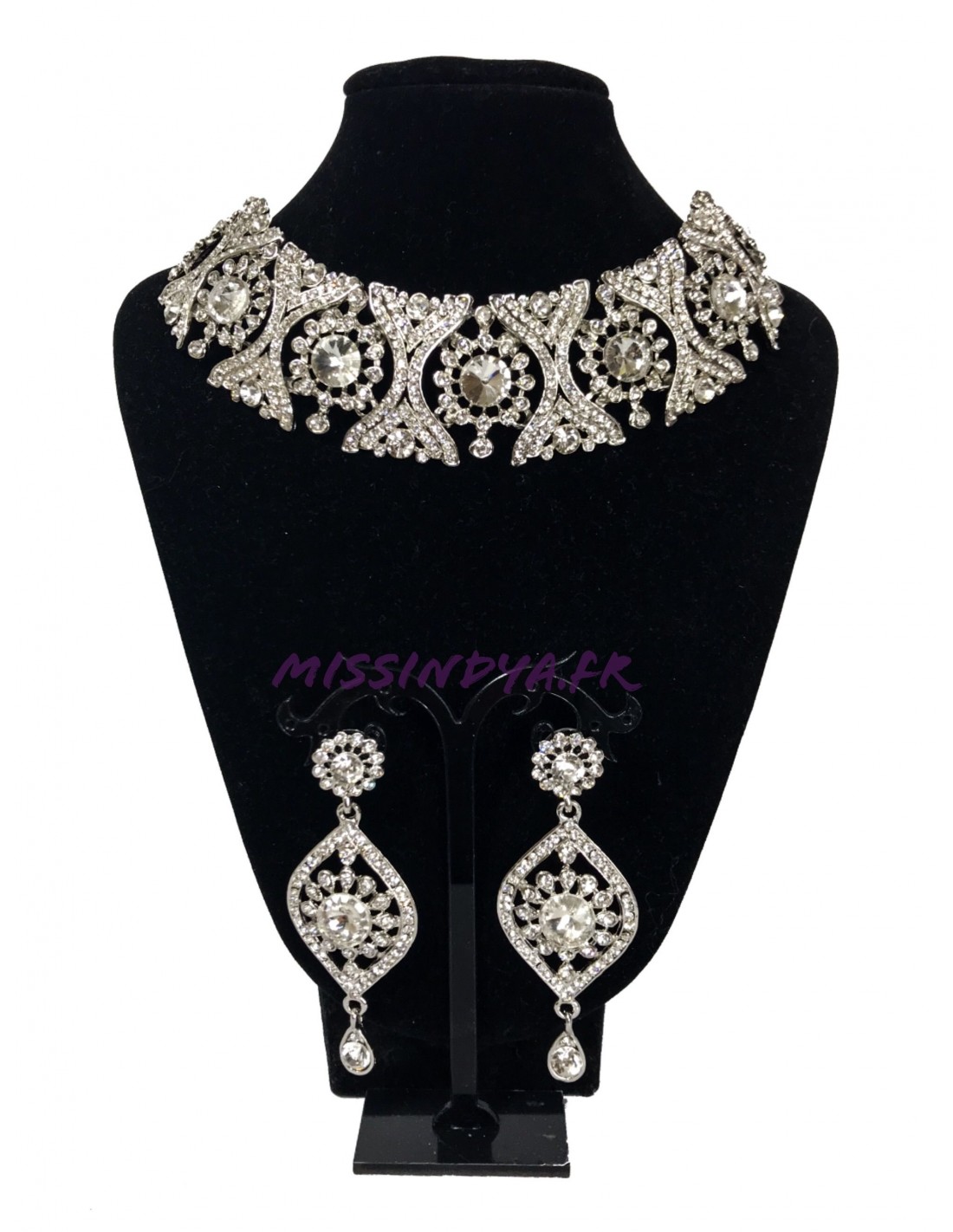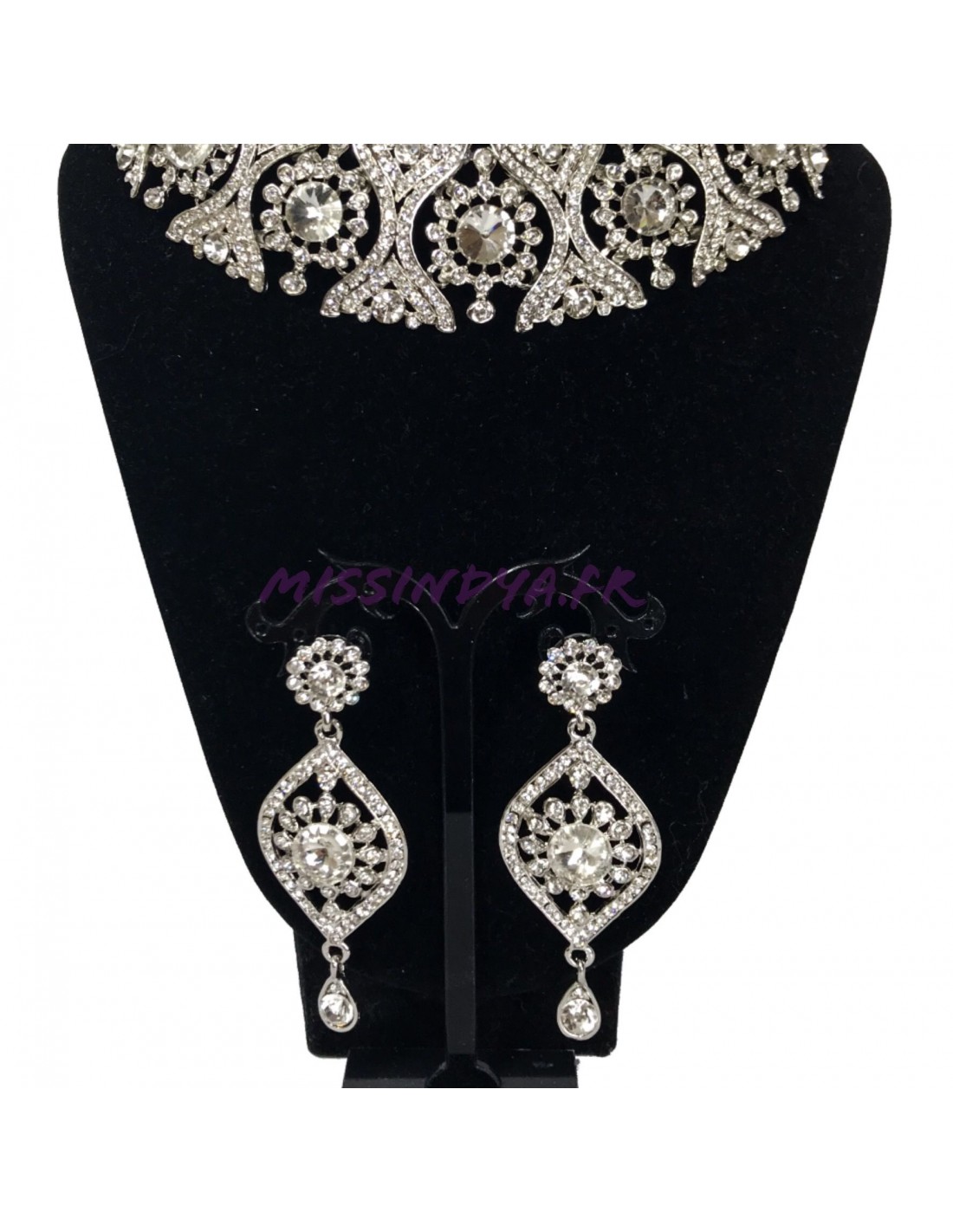 Parure indienne idéale pour être assortie avec vos robe de soirée sertie de pierre argenté