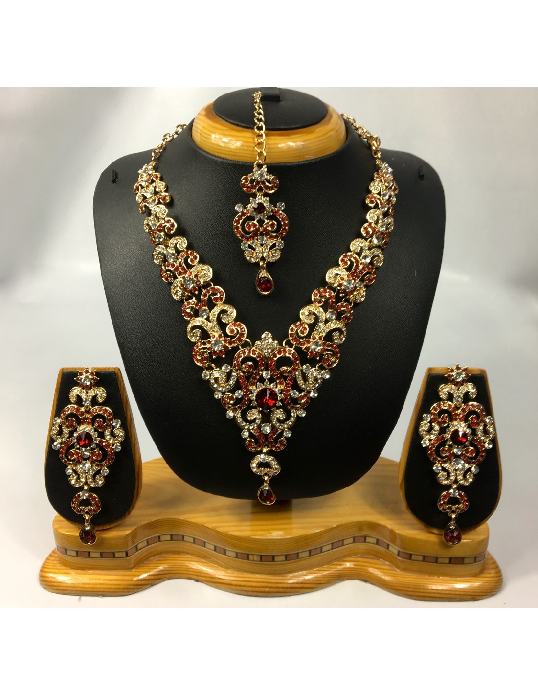 Parure bollywood 4 pièces rouge et doré comprenant :