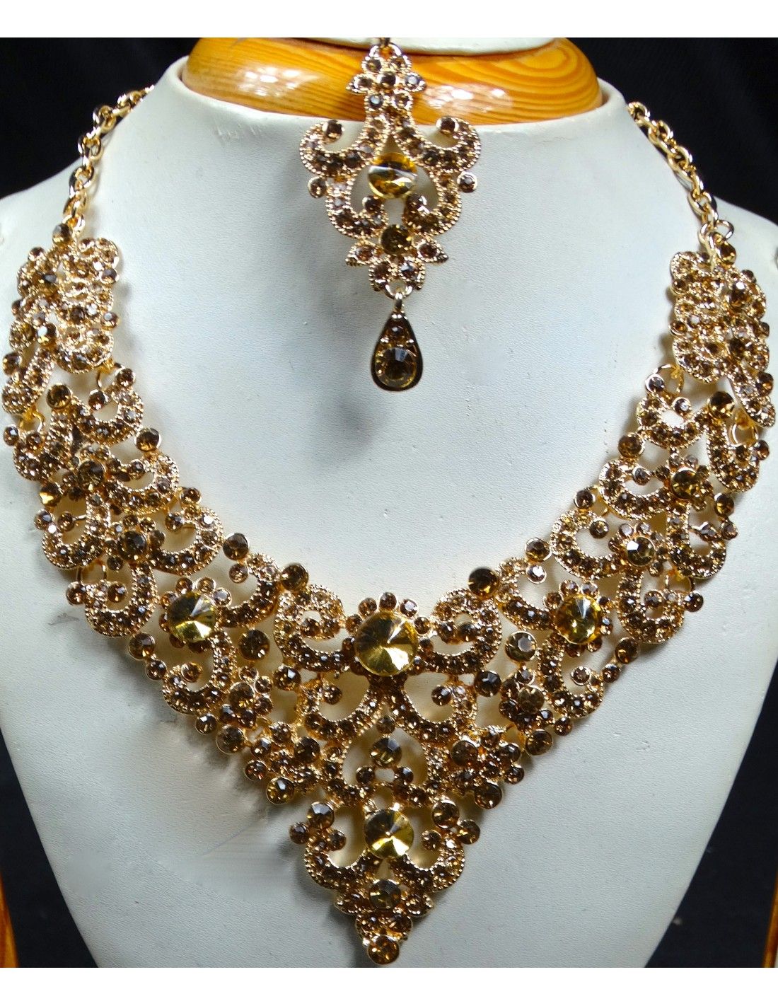 Parure Bijoux plaqué Or & pierres ambre, 4 pièces comprenant :