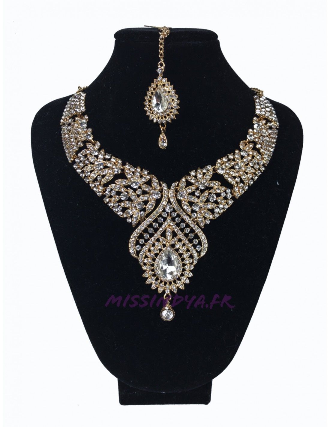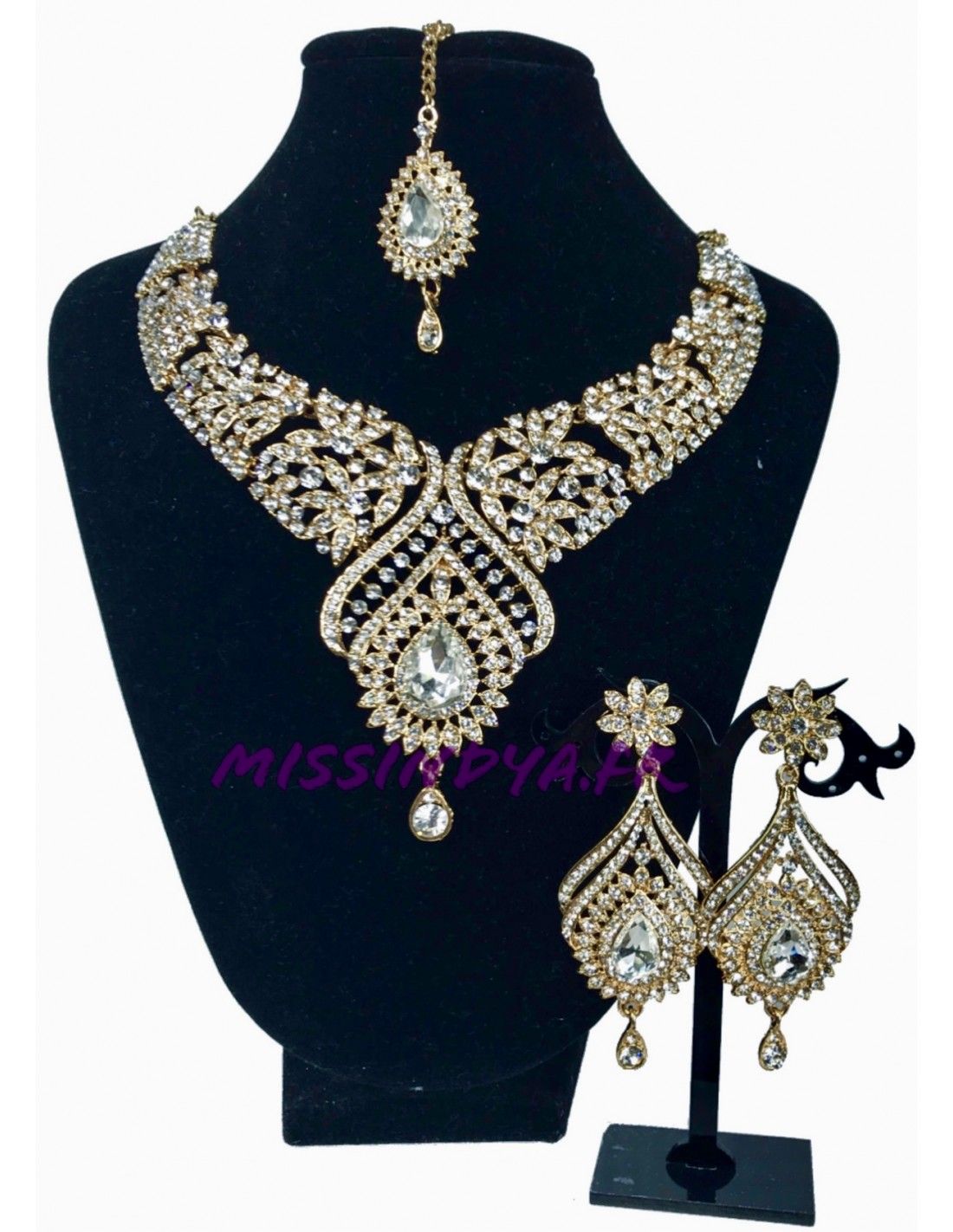 Cette parure conviendra parfaitement à une Salwar Kameez de couleur Doré.