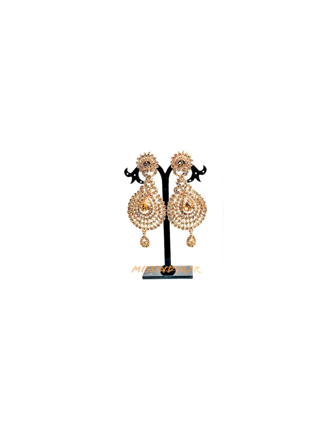Boucles d'oreilles indienne doré strass ambre