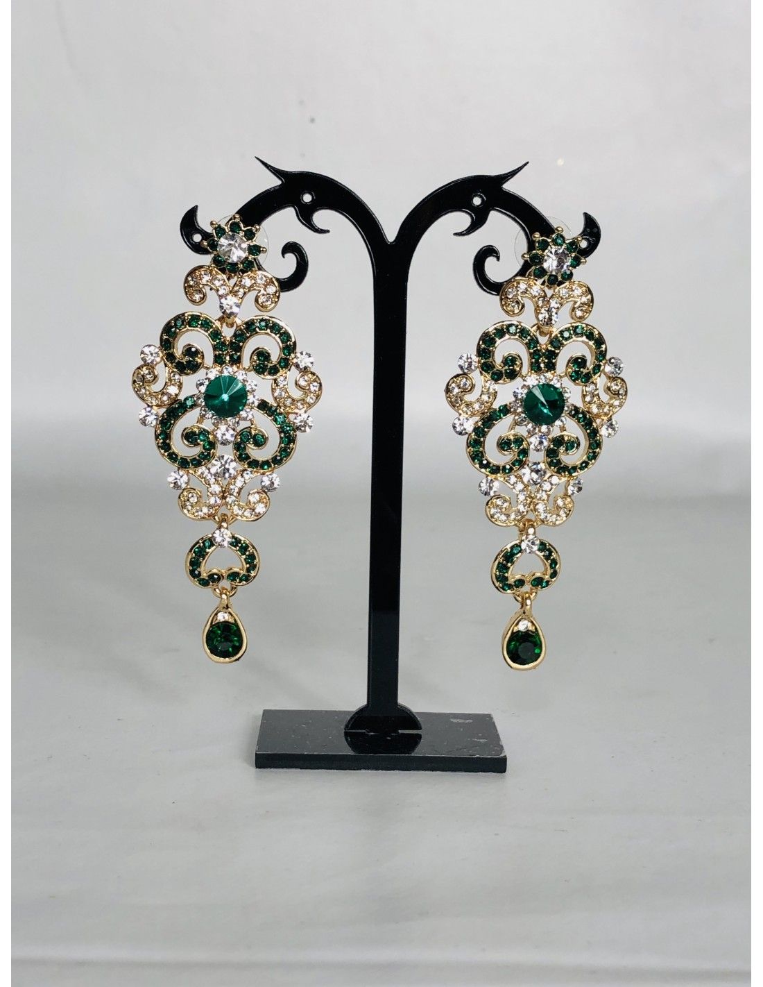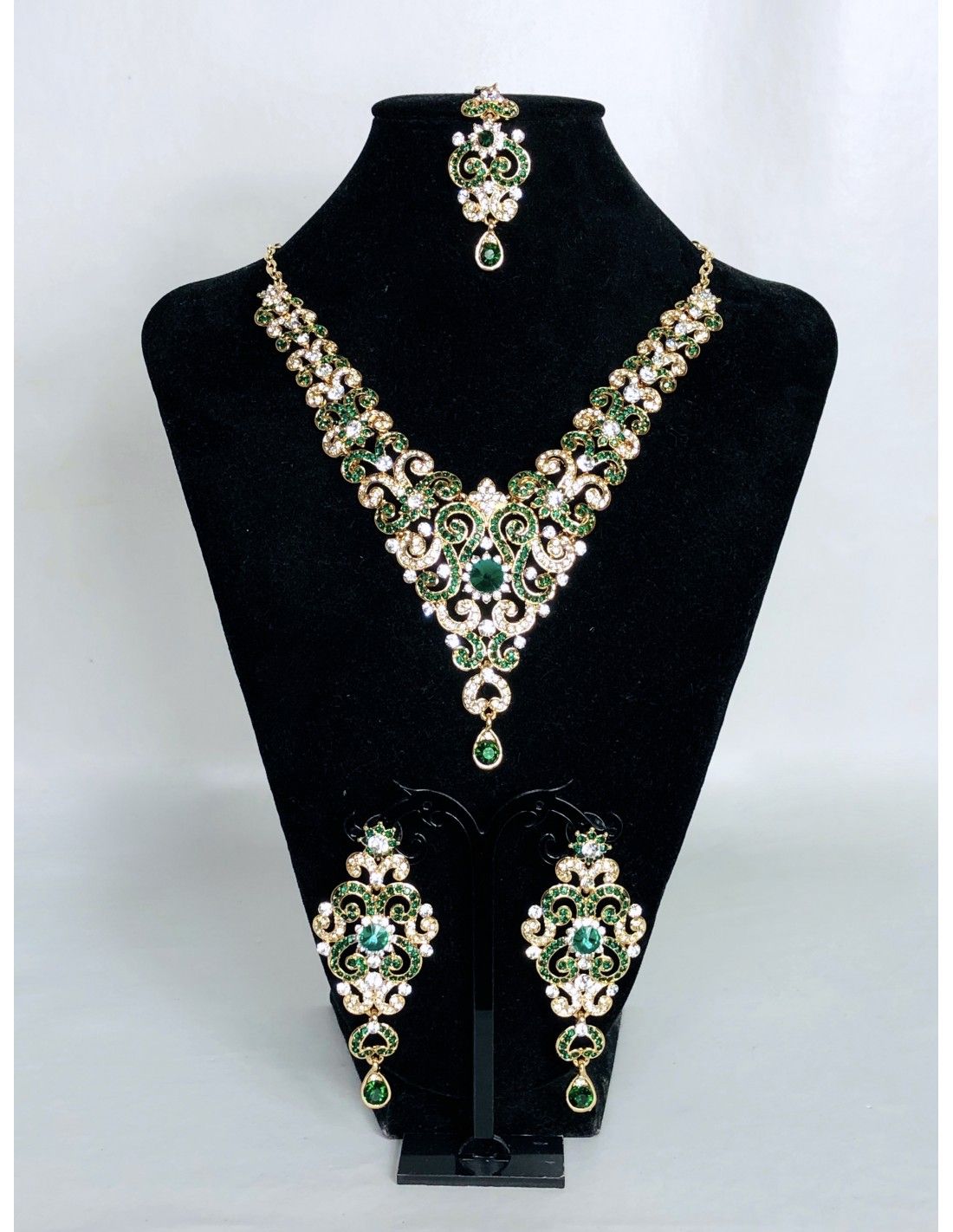 Parure doré et strass vert