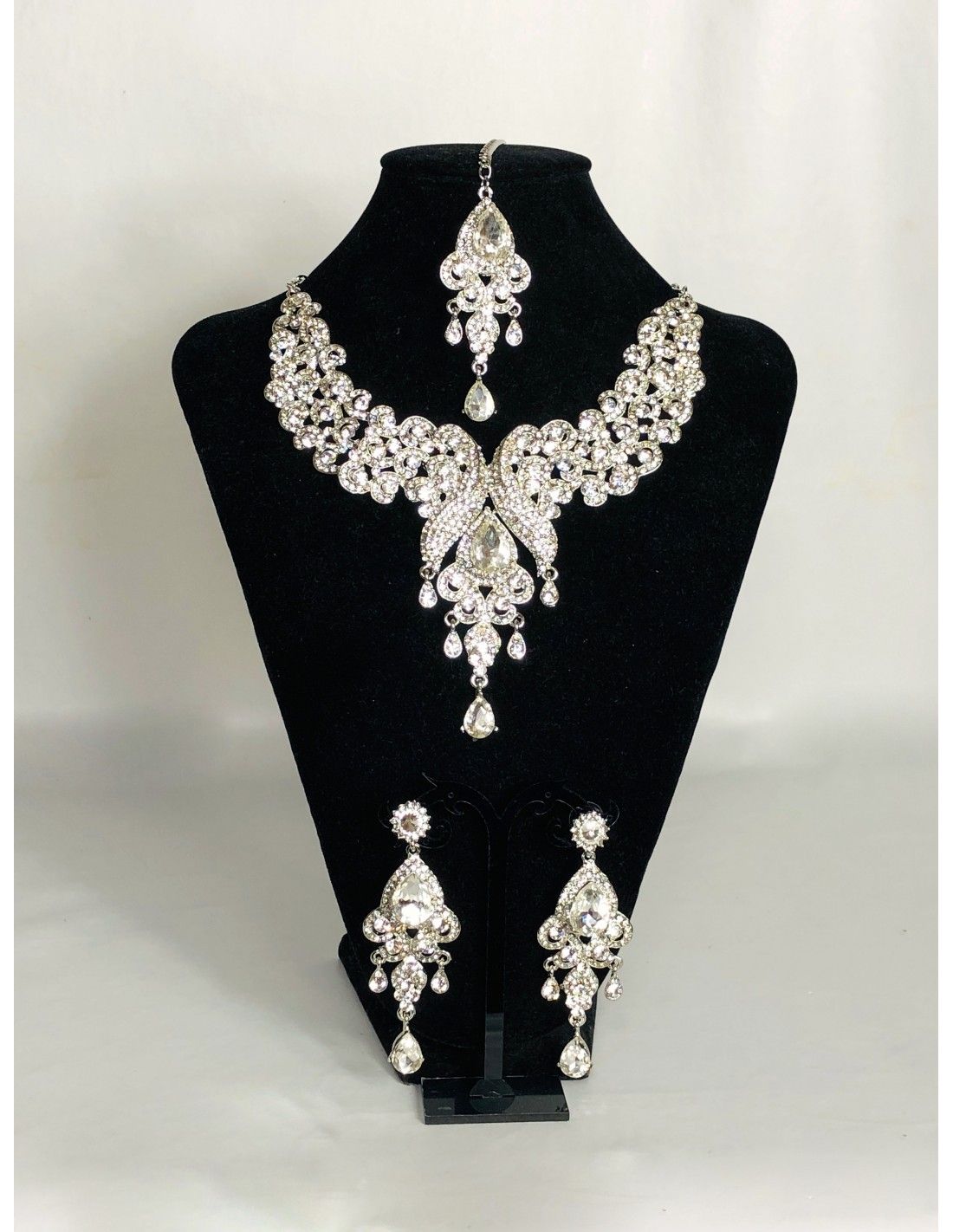 Parure Bollywood indienne argente 4 pièces comprenant :