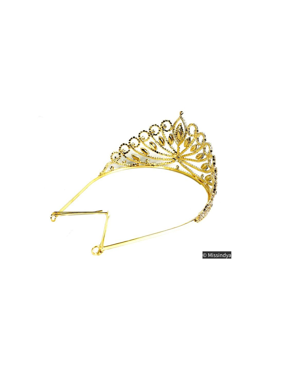 diadème / Couronne de couleur doré et sertie de pierres verte émeraude