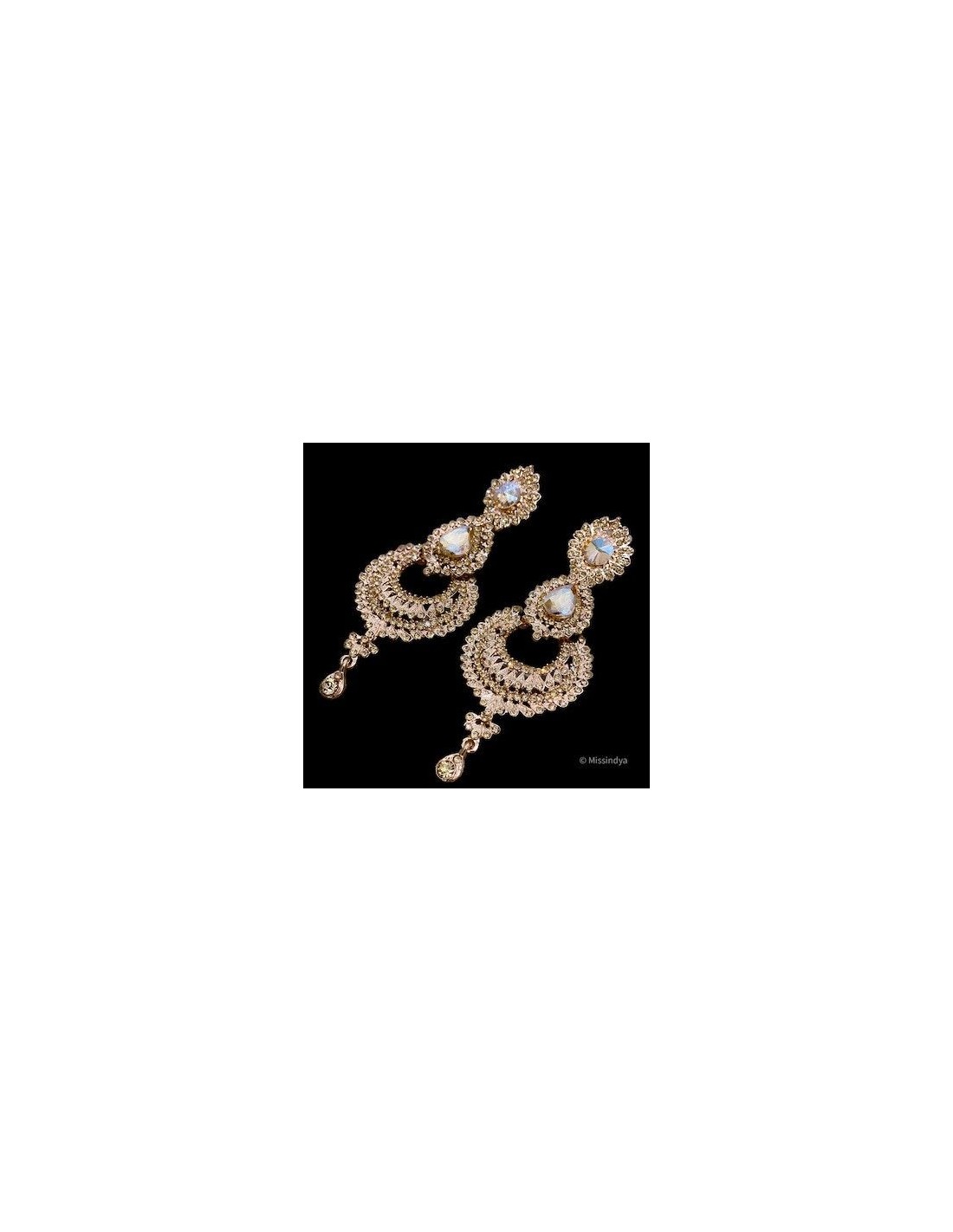 Paires de Boucles d'oreilles strass dorée, idéale pour être assortie avec vos tenues bollywood ou orientales