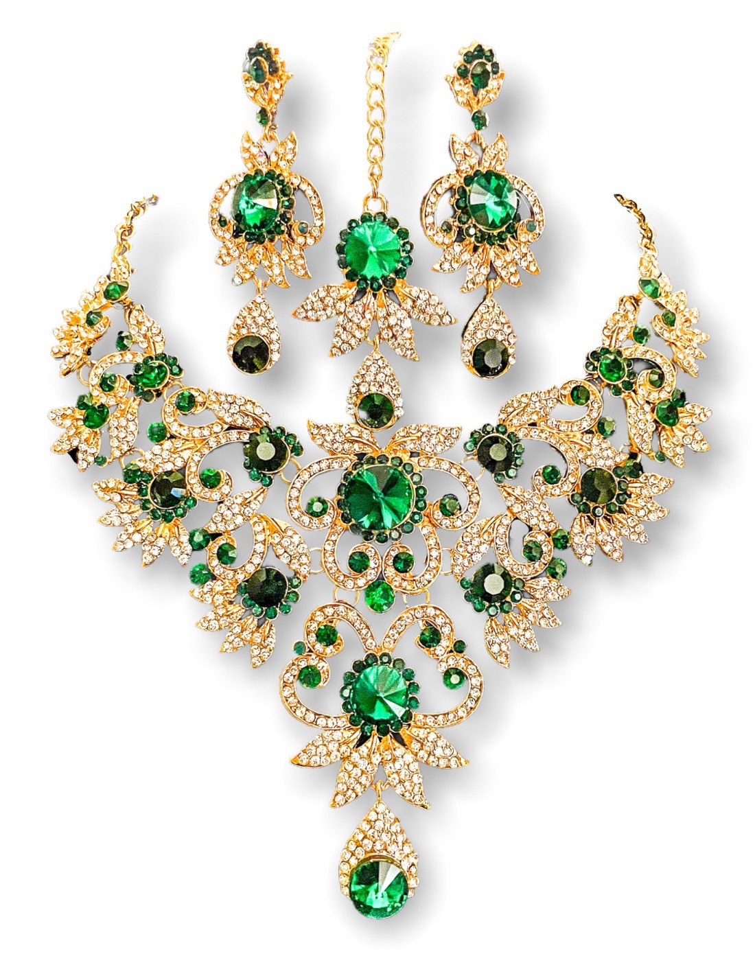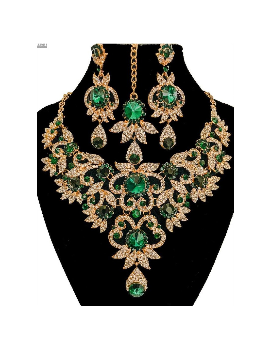 parure bijoux vert foncé et doré 4 pièces indienne , inspiré des bijoux que porte vos actrices Bollywood préférée!