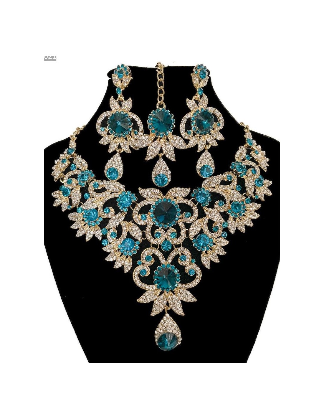parure bijoux turquoise et doré 4 pièces indienne , inspiré des bijoux que porte vos actrices Bollywood préférée!