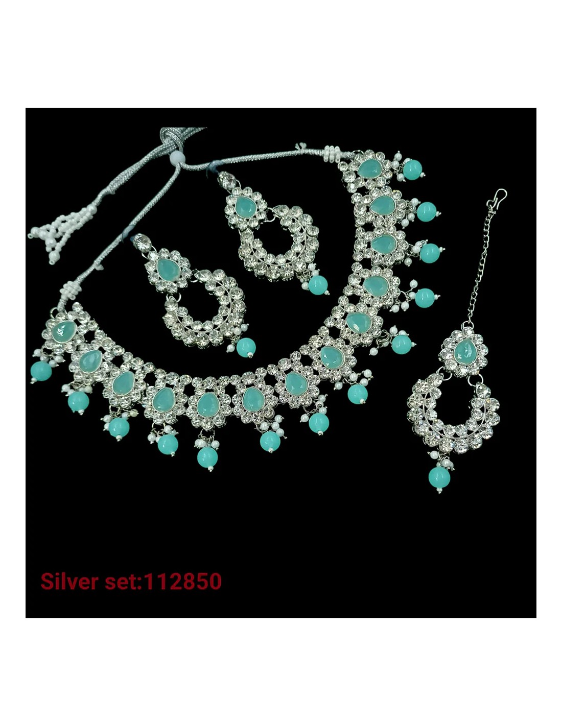 Parure indienne bollywood de couleur bleu turquoise 4 pièces comprenant: