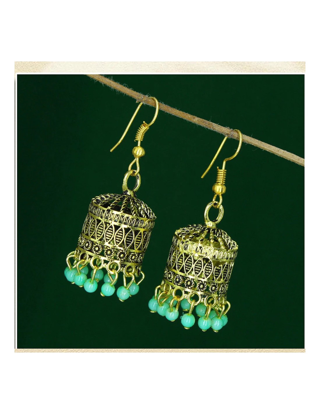 Boucles d’oreilles indiens jhumka doré et Bleu vert