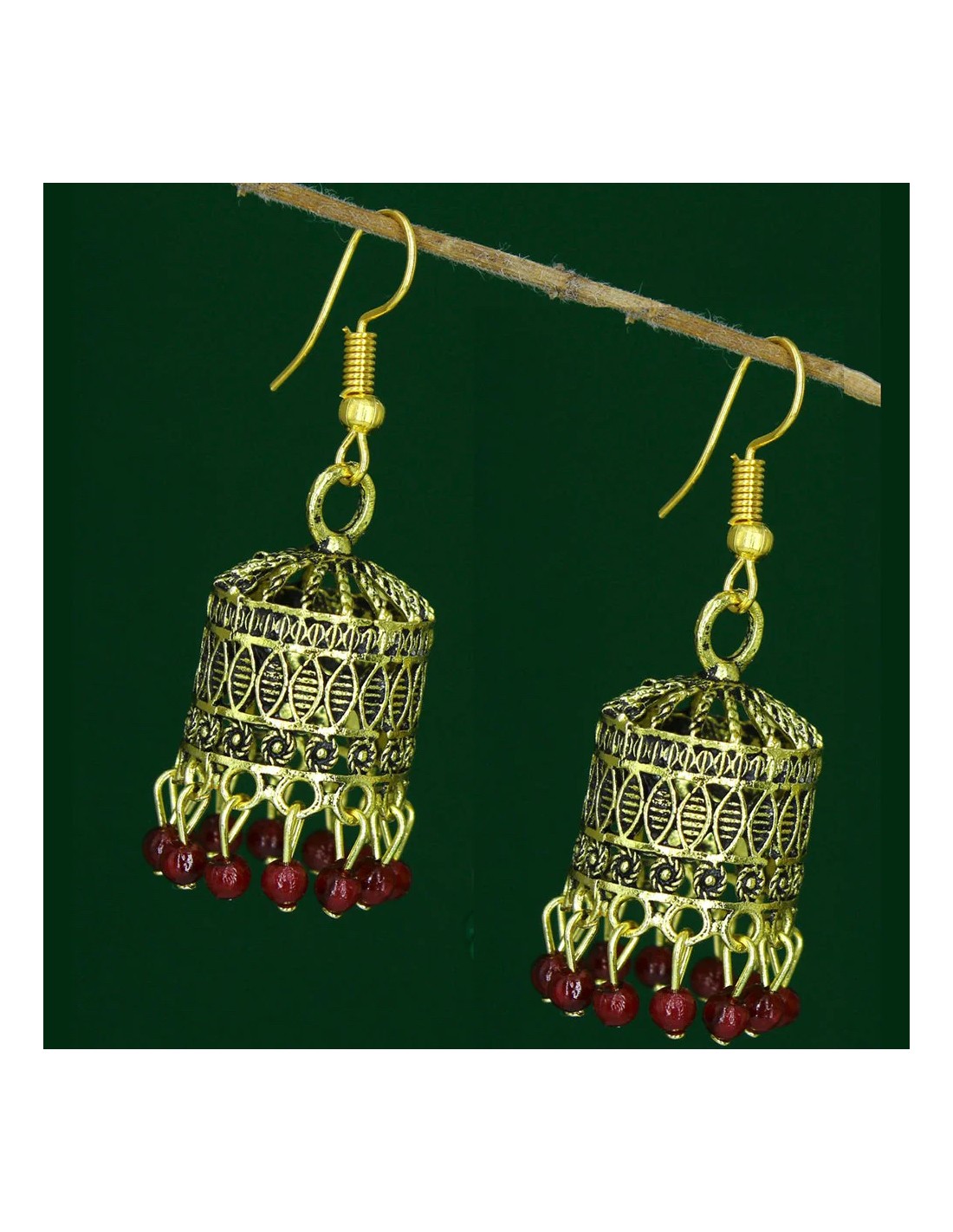 Boucles d’oreilles indiens jhumka doré et rouge bordeaux