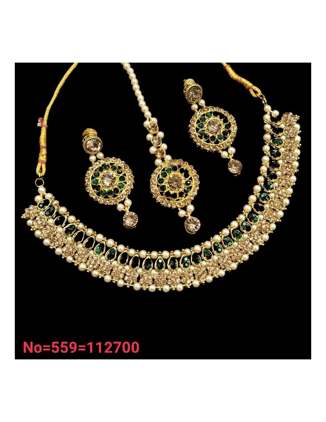 Parure Bijoux collier indienne doré ambre vert choker  - 1
