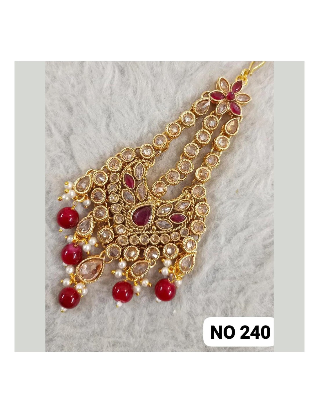 Passa Tikka Bijoux de tête Dore et Rouge  - 1