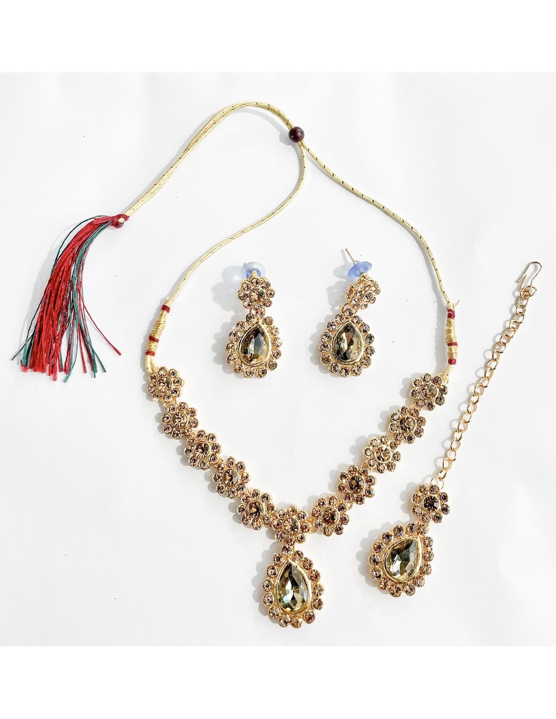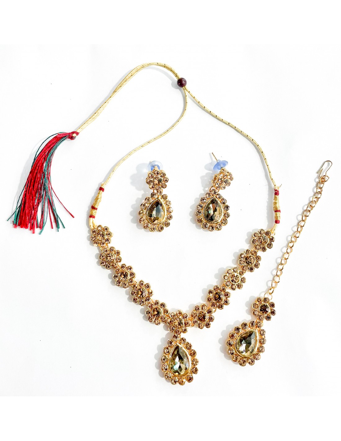 Parure 4 pièces, monture doré et pierre couleur ambré: