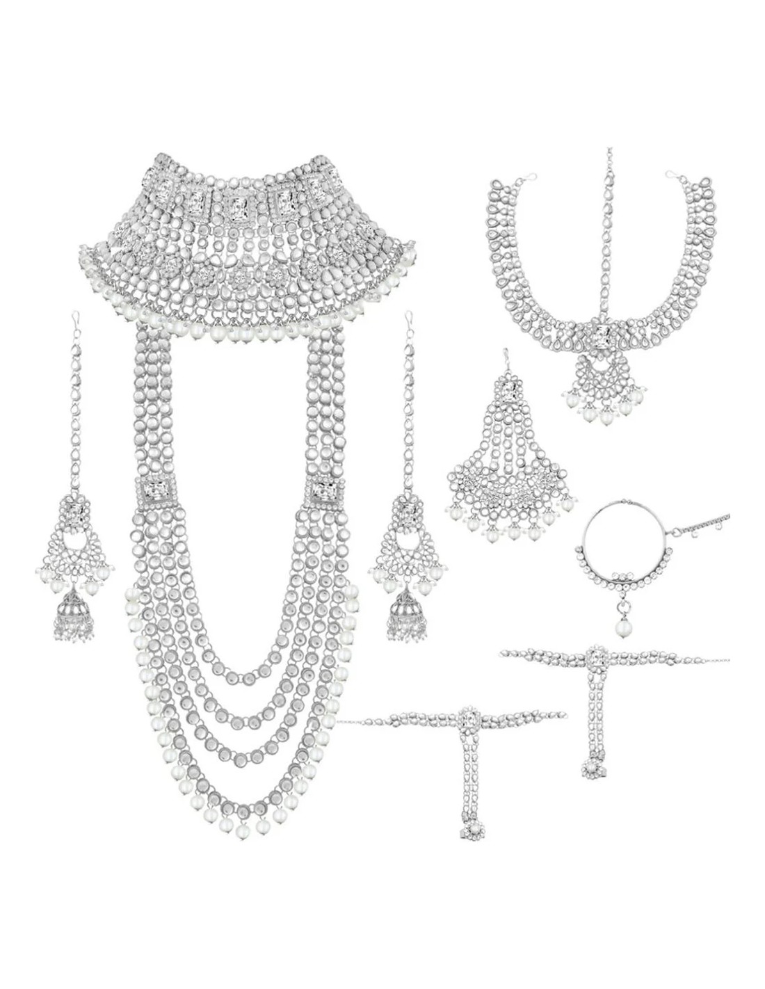 Parure bijoux indienne kundan Blanc argenté