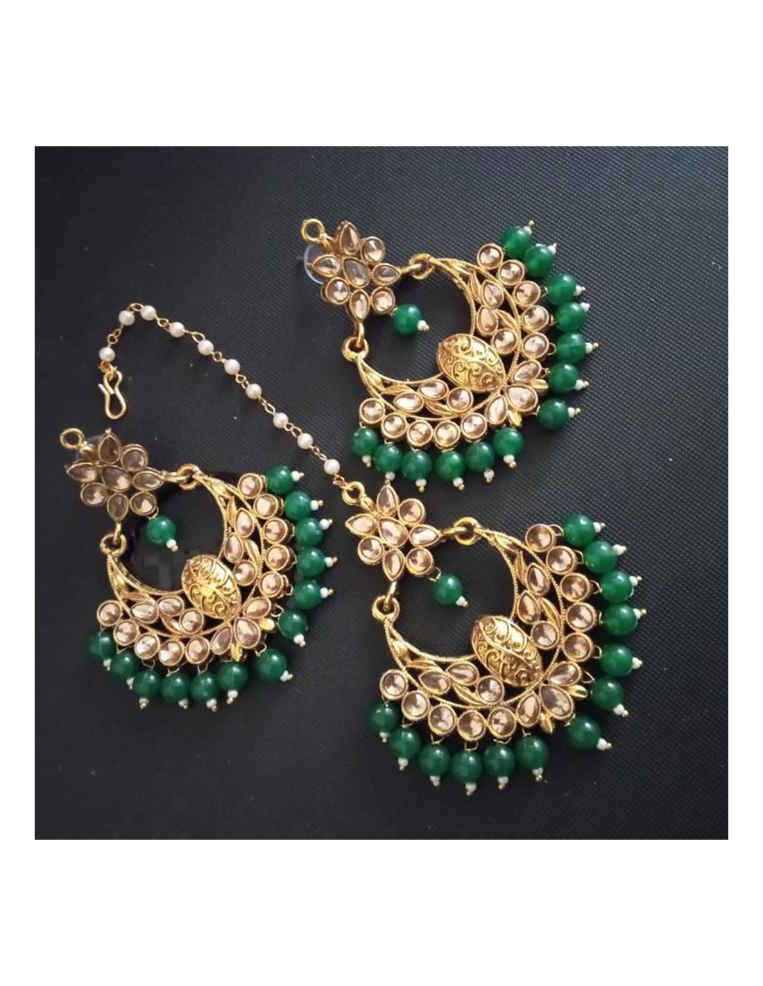 Set Bijoux tête et boucles d'oreilles vert doré