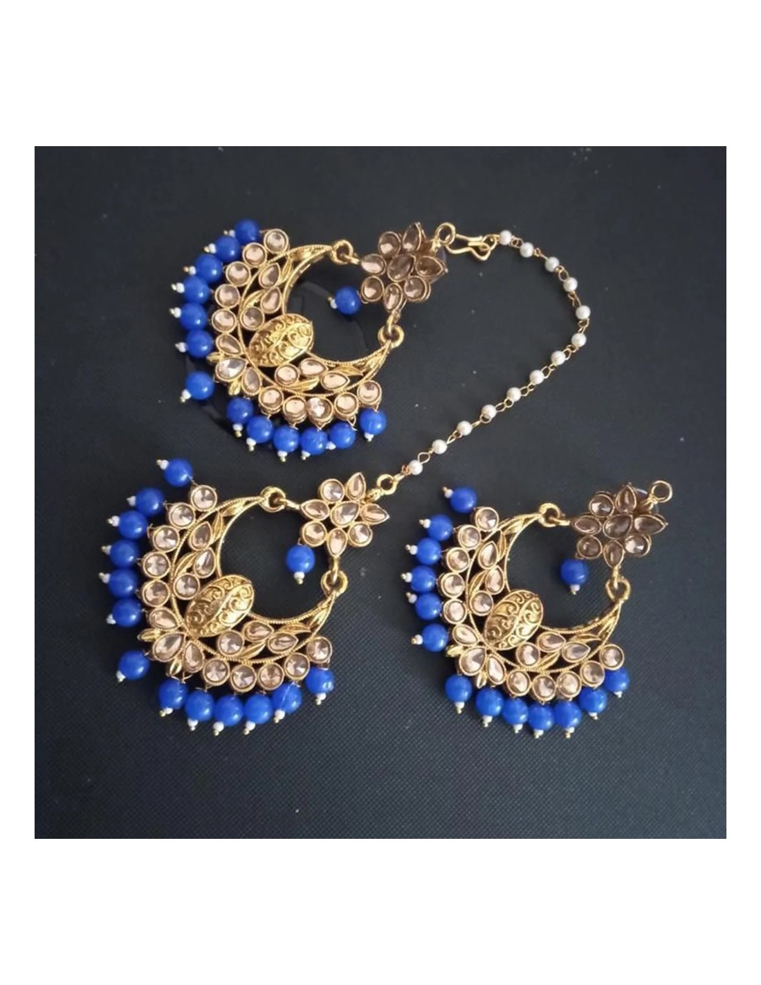 Set Bijoux tête et boucles d'oreilles Bleu doré