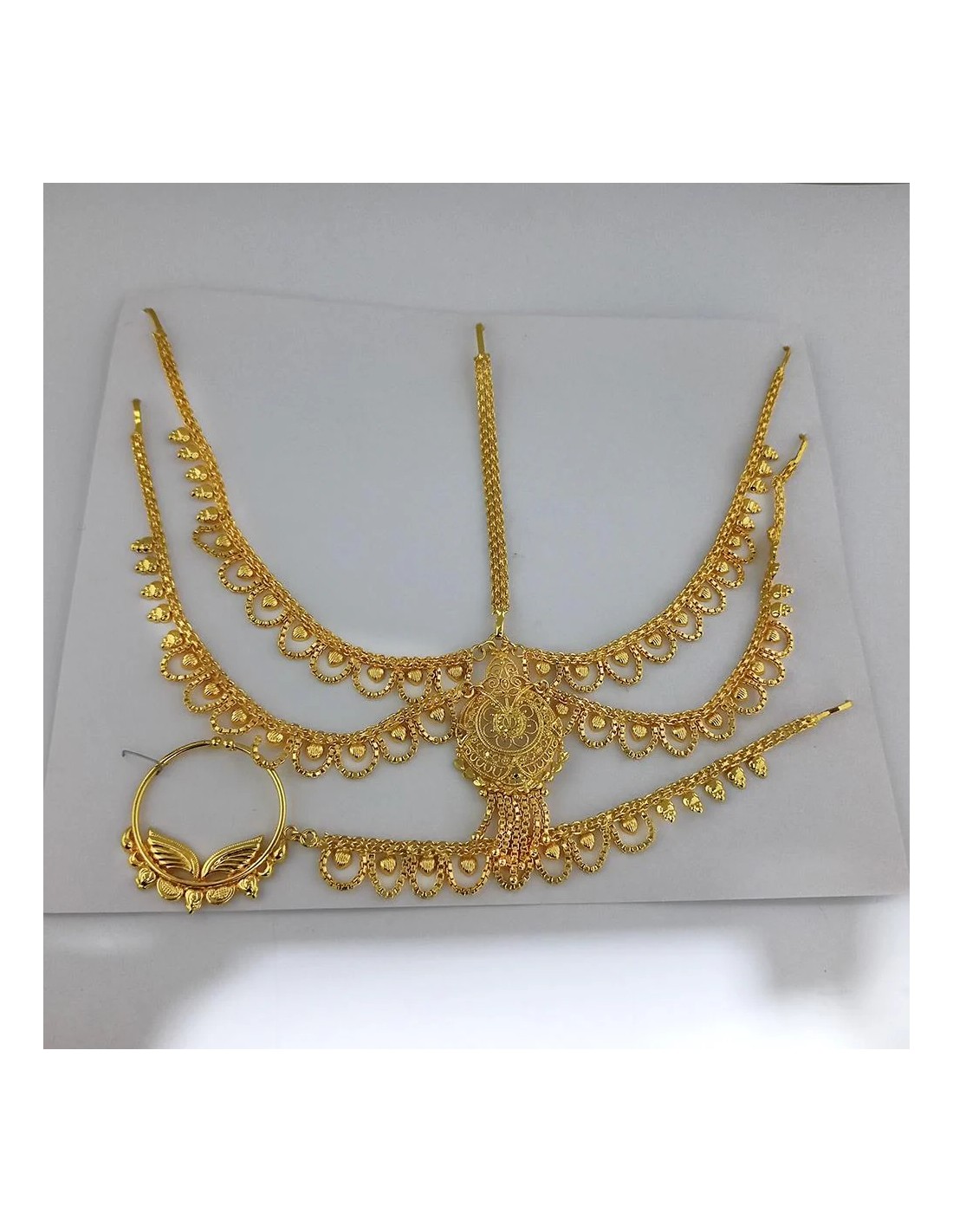 Set Bijoux tête et bijoux nez doré  - 1