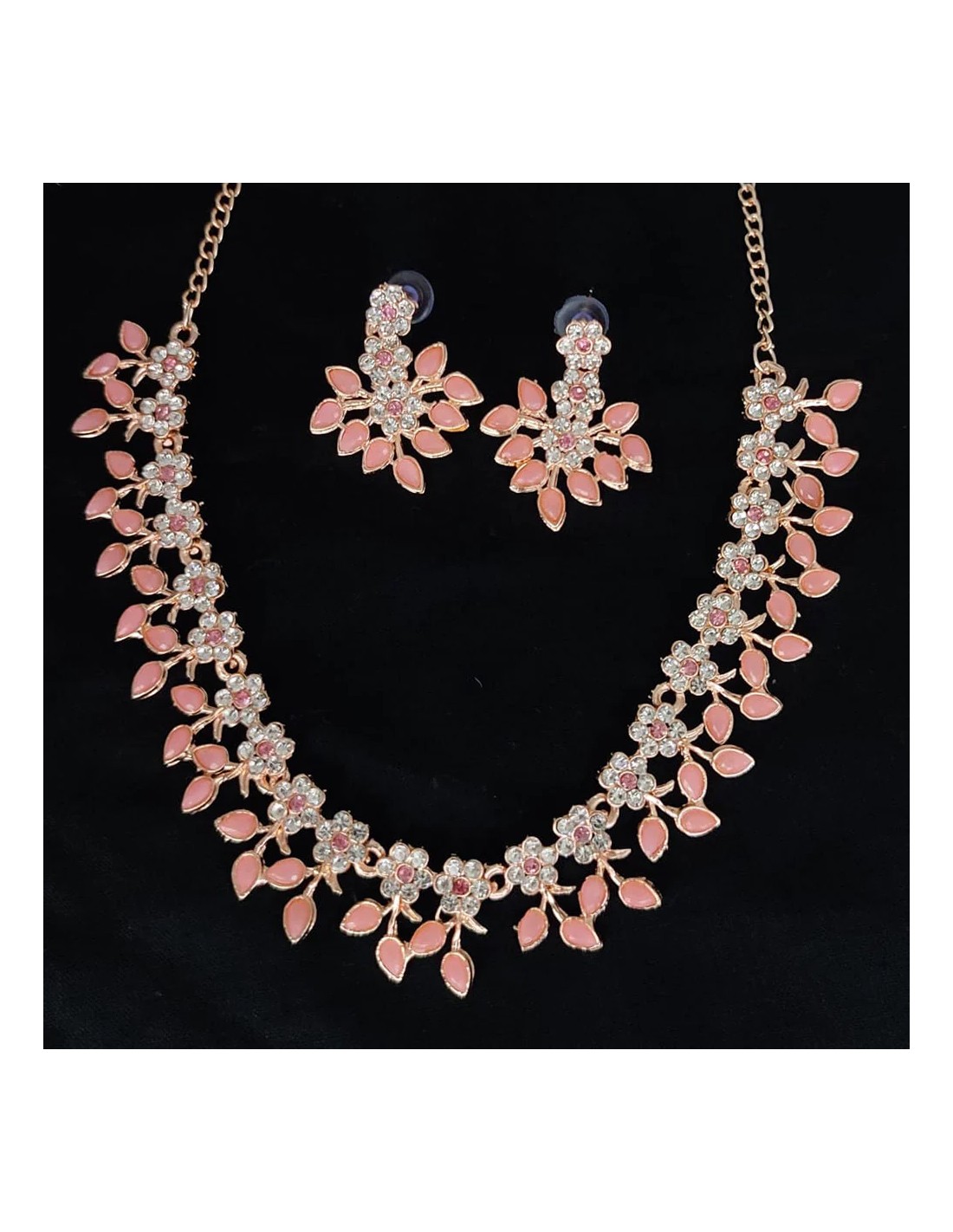 SET Bijoux collier flower dore rose clair  - 1