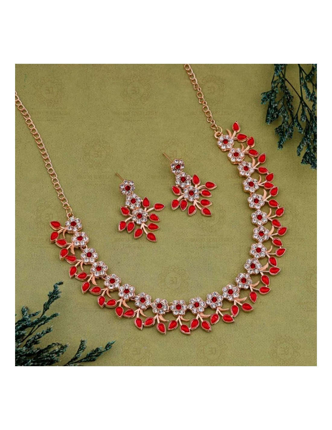 SET Bijoux collier flower dore rouge  - 1