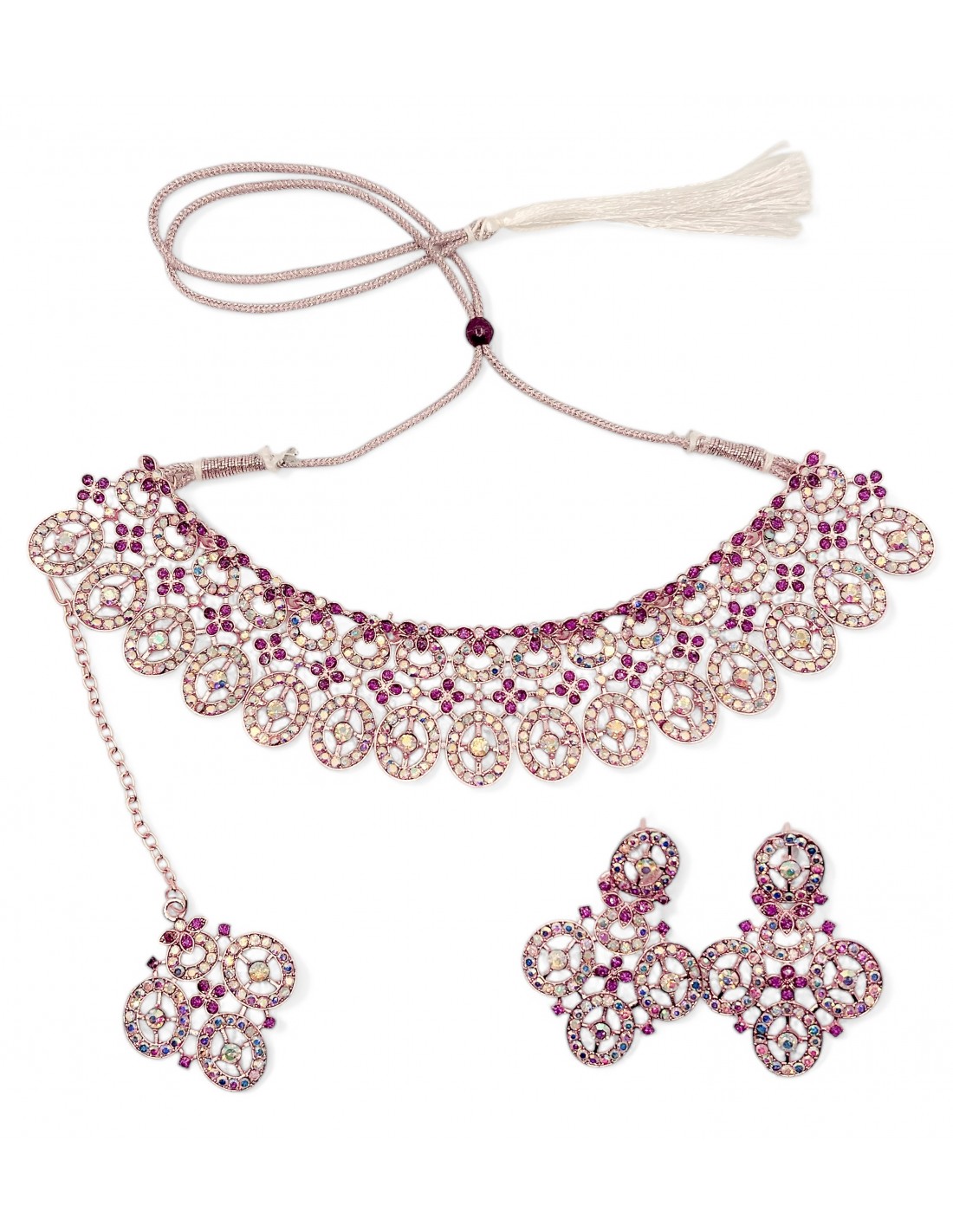 Parure Bijoux indiens Reshma Rose et doré  - 1