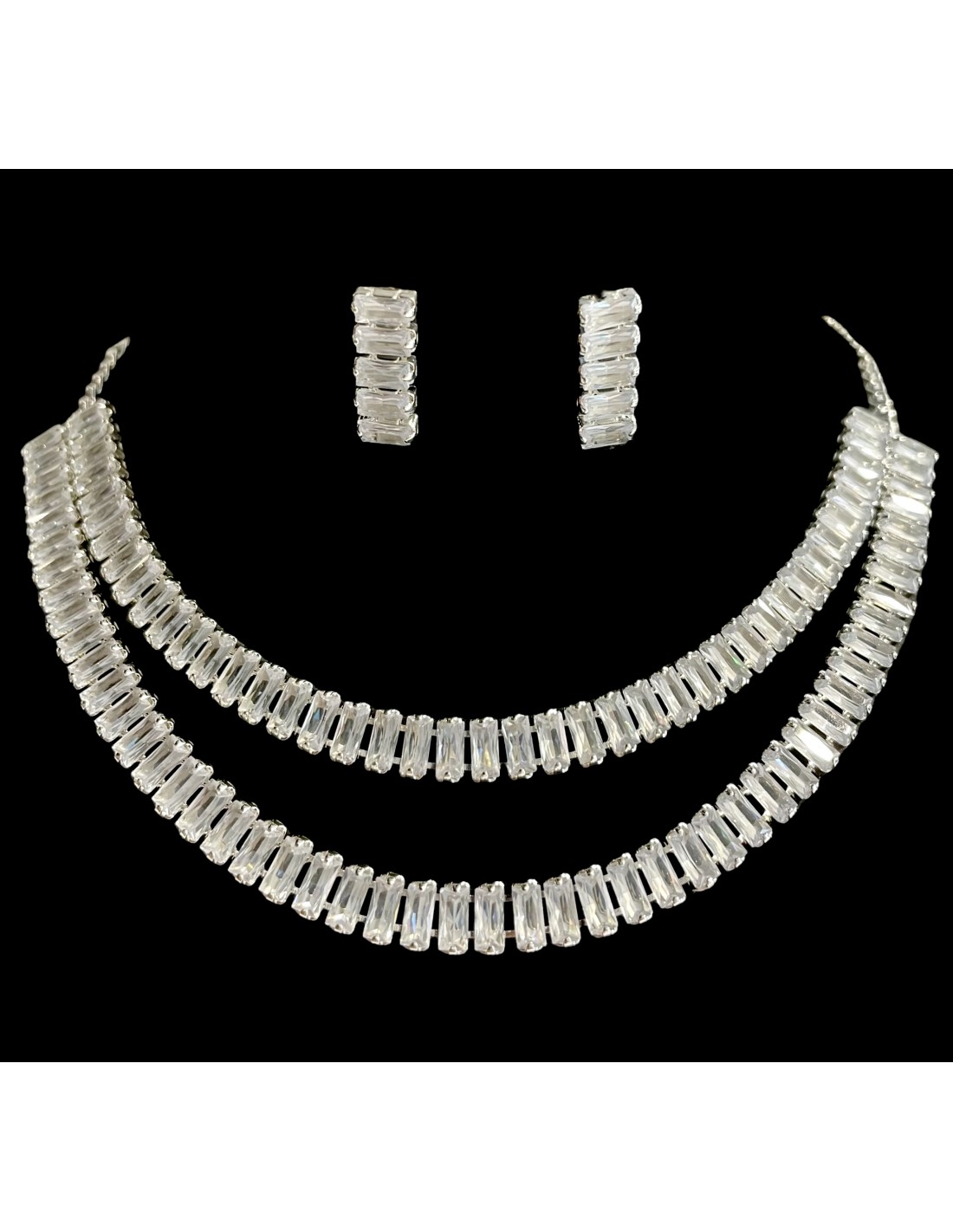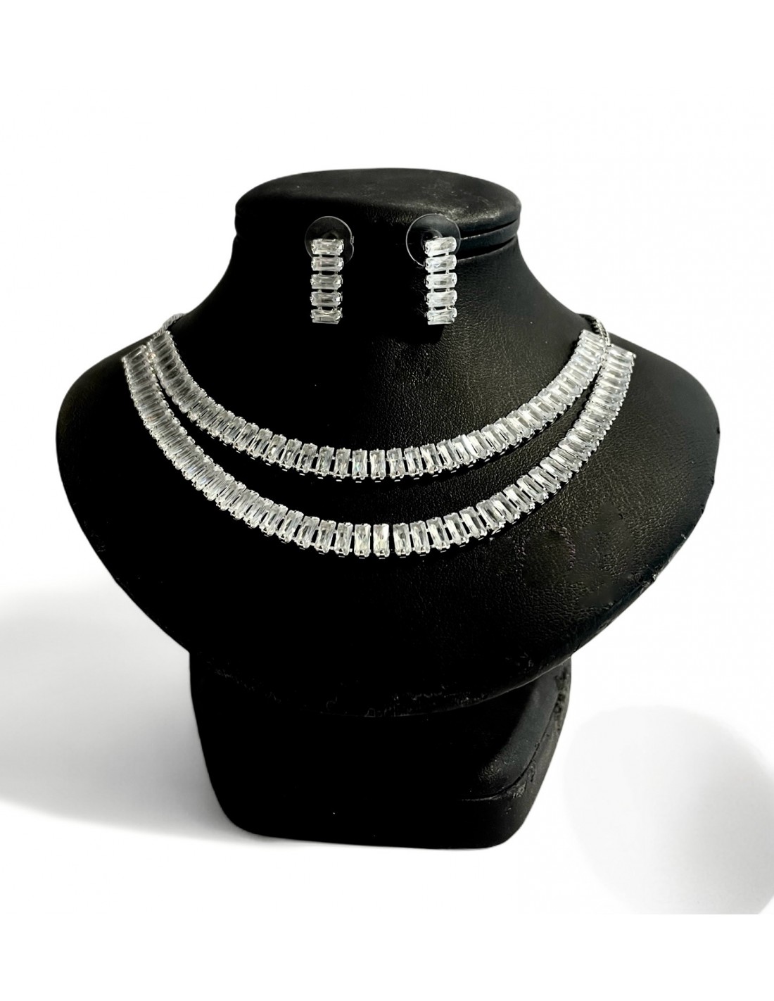 Parure Bijoux strass zirconium argenté, 3 pièces