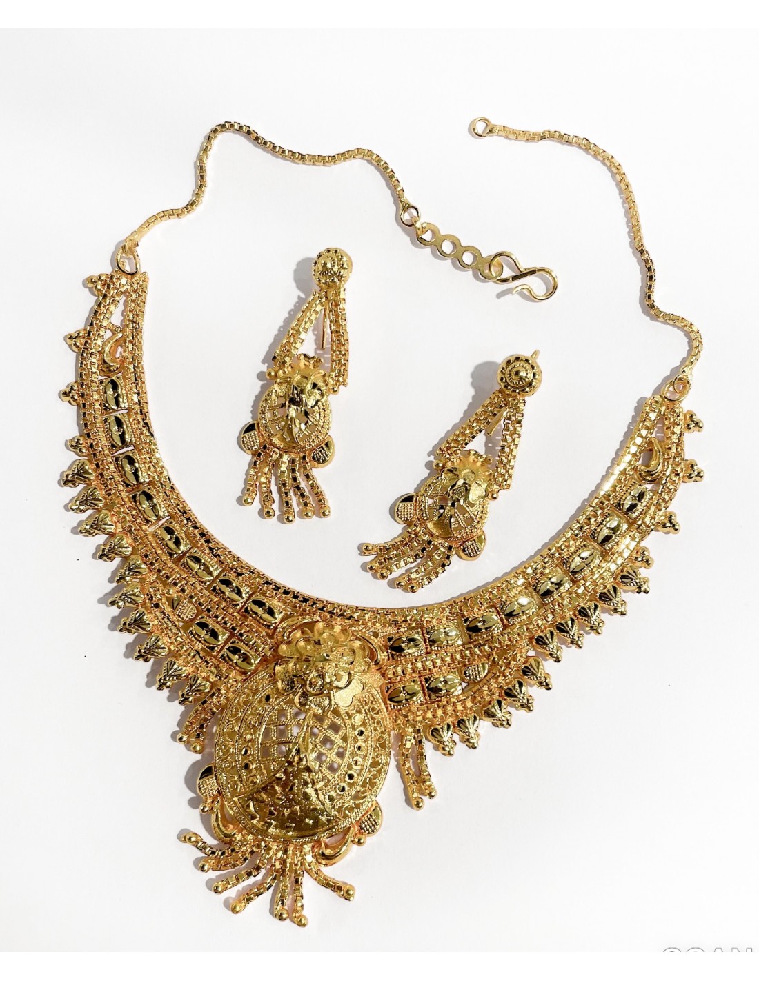 Chaque pièce est minutieusement conçue avec des détails en relief, des motifs géométriques et floraux, et des finitions brillantes qui imitent l’éclat de l’or pur. Le design traditionnel s’inspire de l’artisanat indien et pakistanais, apportant une touche royale à votre look. Idéale à porter avec un saree, un lehenga ou un caftan.
